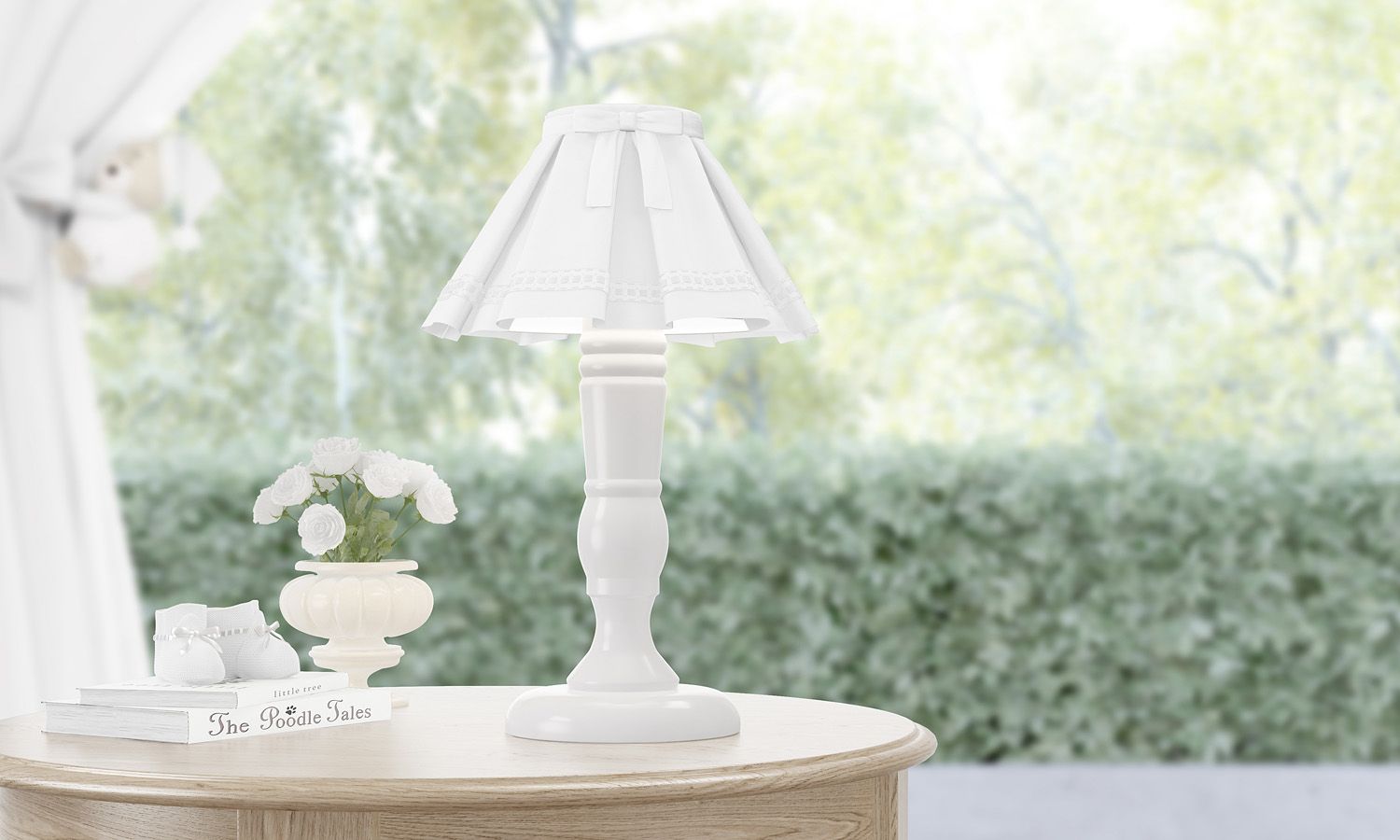 Quando o sol vai se pondo, as mamães ou os papais precisam ligar uma luminária ou o lindinho Abajur Branco Clássico Torneado para iluminar o quarto de bebê. O design clássico e sutil se encaixa perfeitamente na decoração do quartinho do seu amor, com detalhes como o passa fita e o lacinho branco que dão todo um charme para esse acessório encantador!
