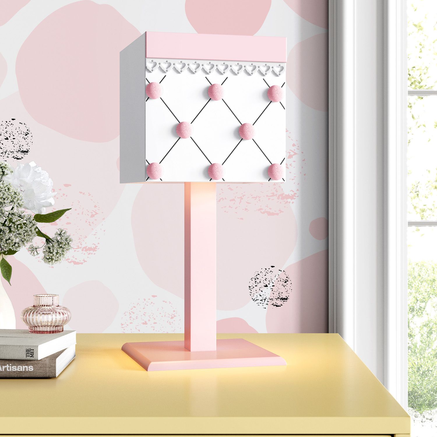 O Abajur Pompom Rosa é exclusividade da Grão de Gente. Com aplicação em madeira de corações, esse abajur bivolt tem o tamanho ideal para iluminar o ambiente na medida certa, principalmente na hora das mamadas e trocas de fraldas noturnas. Além de ser uma graça na decoração de estilo romântico.