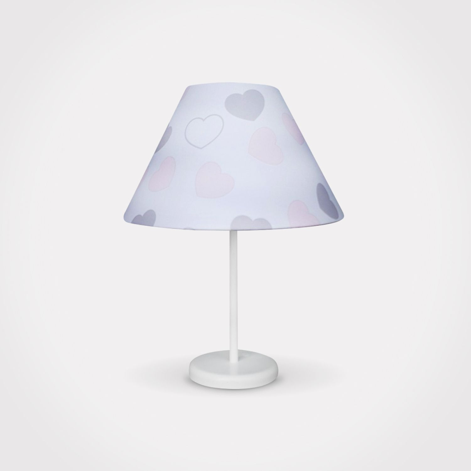 Abajur Simples Branco Corações Rosa e Cinza