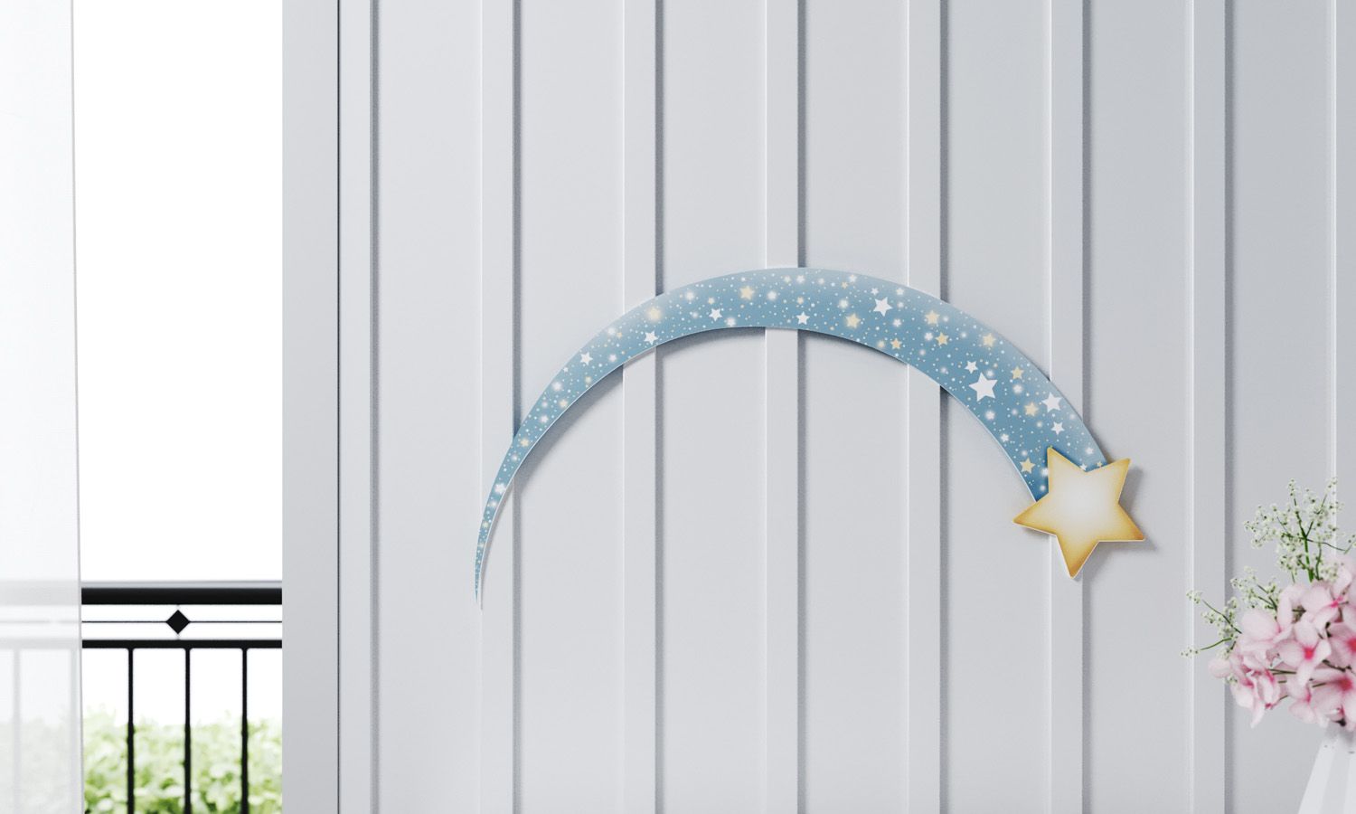 O Adesivo de Parede Estrela Cadente 31cm é perfeito para personalizar a decoração do quarto de princesa! Feito de PVC com impressão digital, ele é adaptável a qualquer superfície lisa e deve ser aplicado em lugares limpos, livres de poeira.