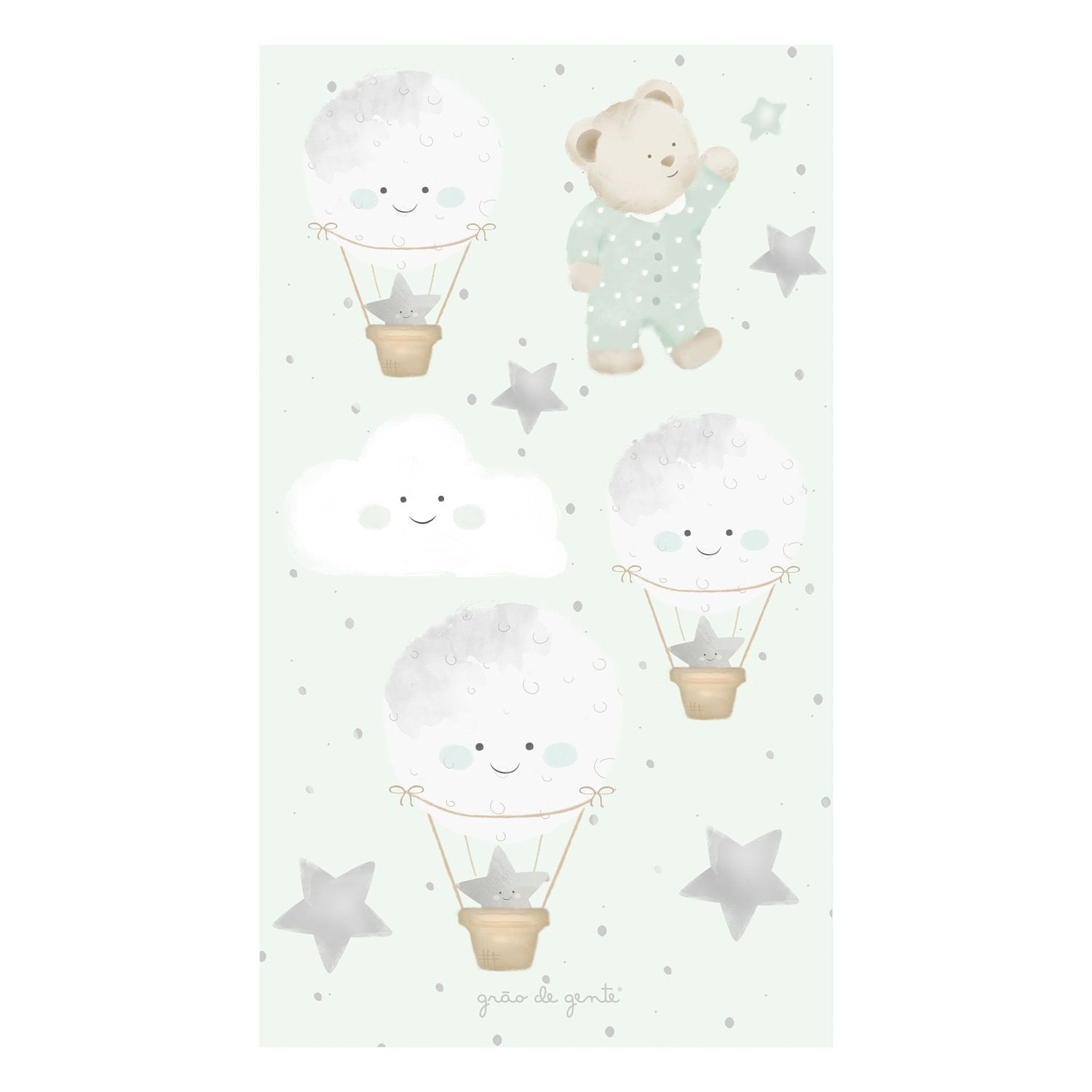 Adesivos de Parede Ursinho, Balões, Nuvem e Estrelas Verde