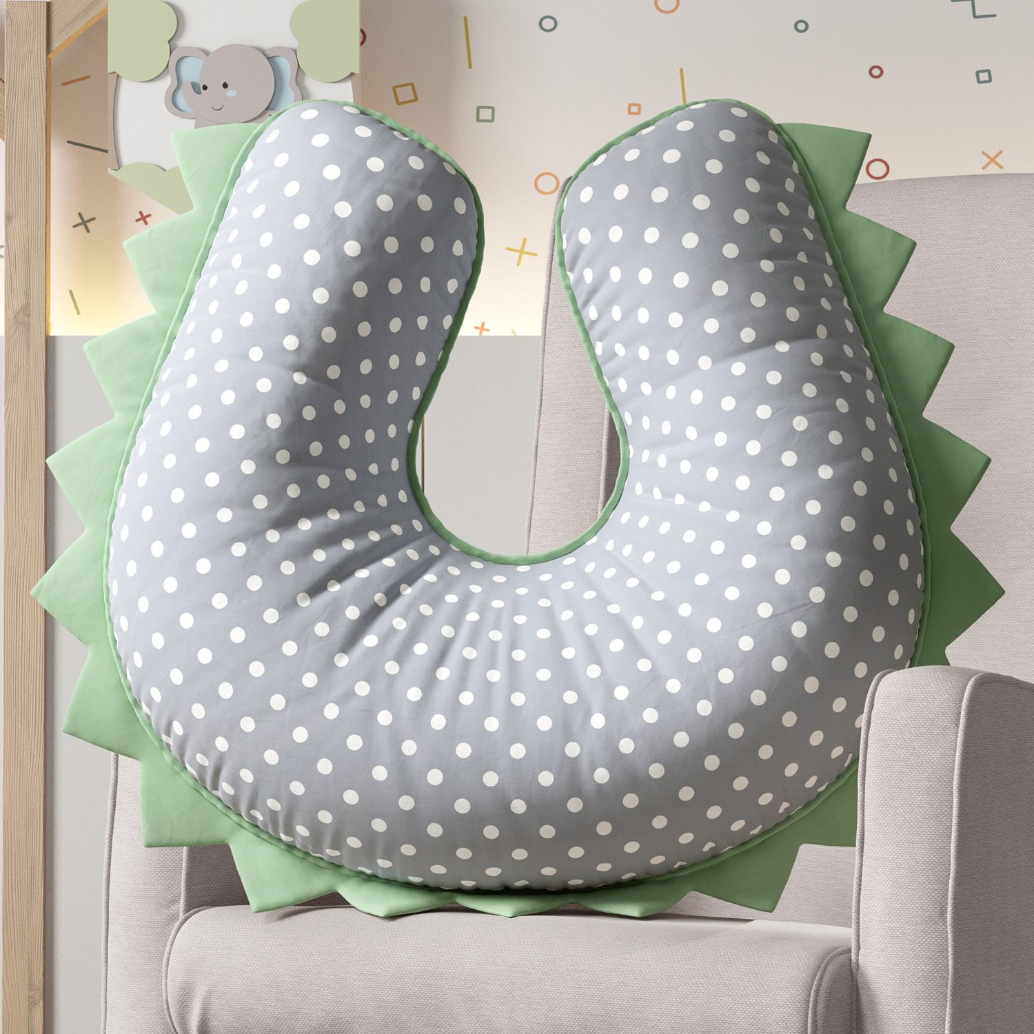 Almofada Amamentação Dino Poá Verde e Cinza