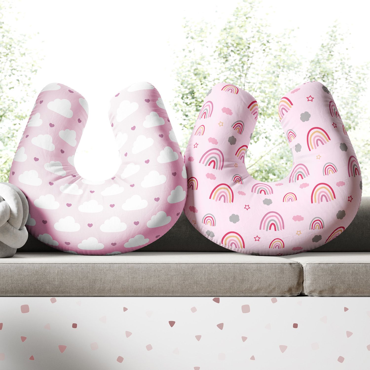 Almofada Amamentação Dupla Face Nuvem Arco-íris Rosa