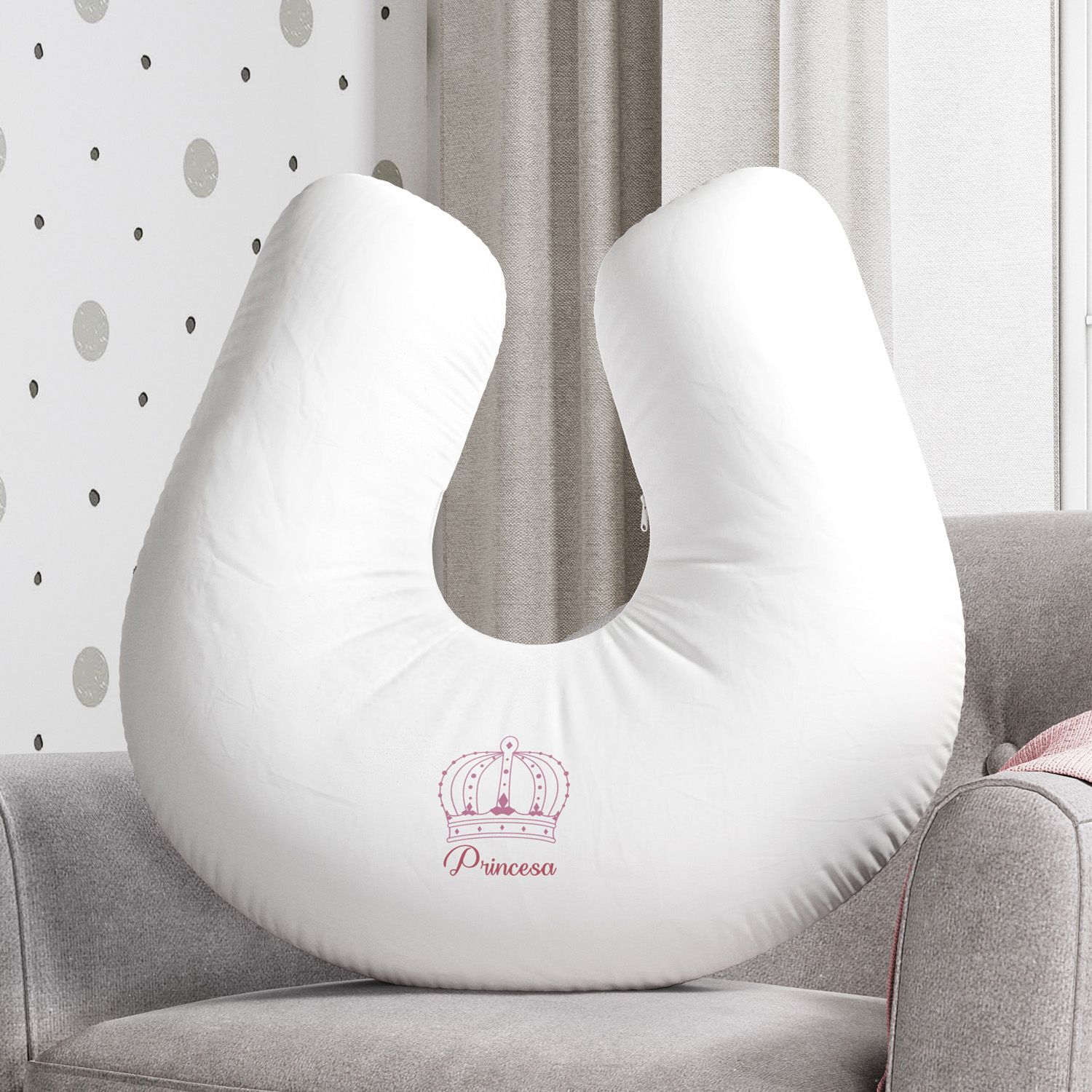 Linda e multifuncional, a Almofada Amamentação Menina Princesa Rosa é sinônimo de aconchego para o bebê e para a mãe nesse momento especial! Um acessório com formato ergonômico que reduz a tensão nos ombros e nos braços na hora de amamentar, além de auxiliar no posicionamento para a pega correta. Uma criação exclusiva Grão de Gente para combinar com o tema do quarto de bebê, com estampa de coroa e zíper, para facilitar a lavagem.