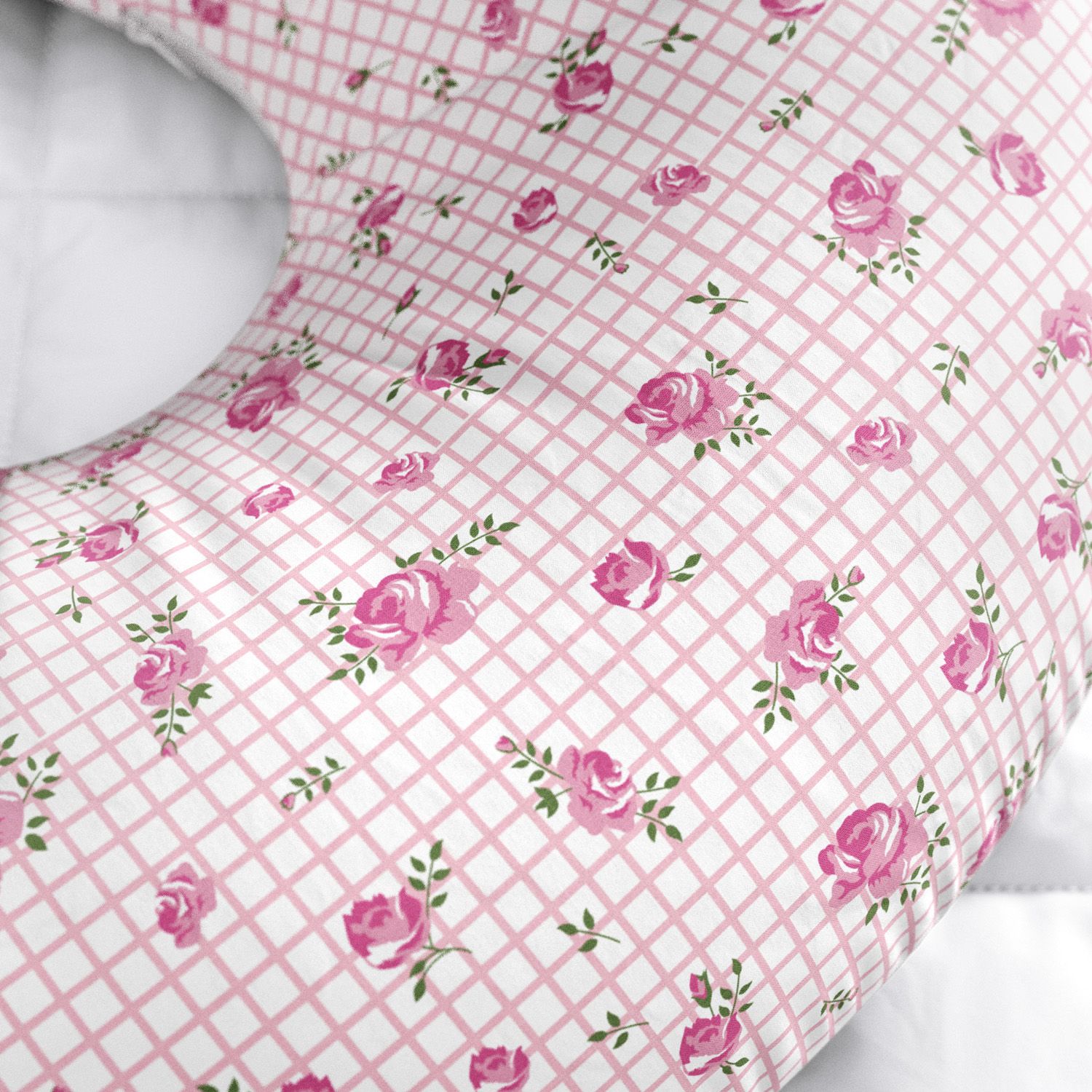 01 Almofada para Amamentação c/ zíper 53cm alt. x 57cm larg.Linda e multifuncional, a Almofada Amamentação Rosas Xadrez é sinônimo de aconchego para o bebê e para a mãe nesse momento especial! Um acessório com formato ergonômico que reduz a tensão nos ombros e nos braços na hora de amamentar, além de auxiliar no posicionamento para a pega correta. Uma criação exclusiva Grão de Gente para combinar com o tema do quarto de bebê, com estampa sublimada e zíper, para facilitar a lavagem.