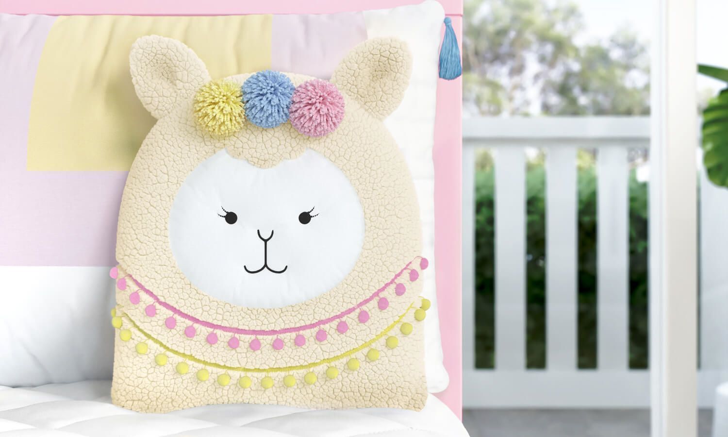 Os destaques dessa bela almofada ficam por conta da aplicação de pompons passamanaria, além das bolinhas de lã que também são uma graça. O suave tecido feito em carapinha acompanhado de um enchimento macio proporciona aconchego para a neném. Conheça as outras almofadas da coleção Amiguinhas Lhamas e forme um conjunto apaixonante no berço ou na cama babá!