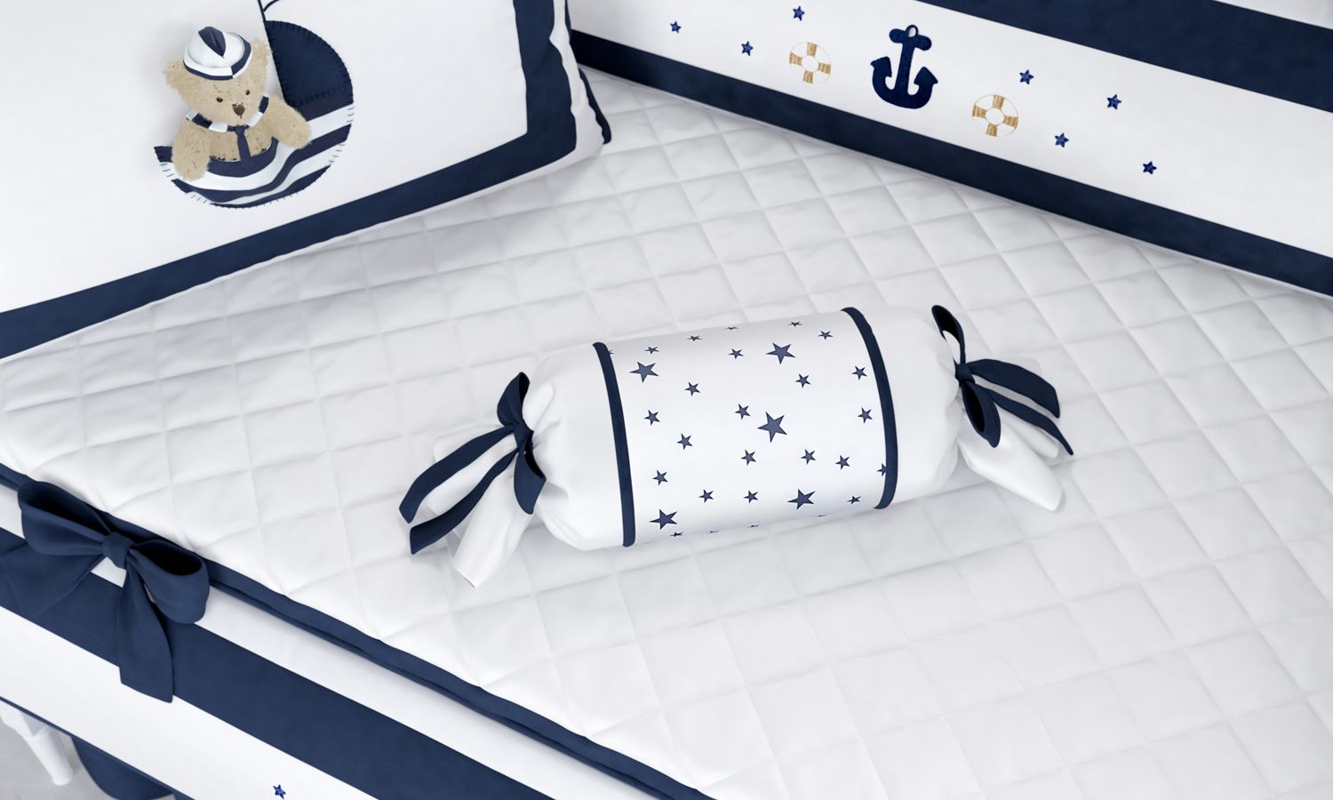 Aconchego, bem-estar e sofisticação você encontra na Almofada Apoio Bala Urso Marinheiro! A peça proporciona o melhor conforto ao novo integrante da família e sofistica o bercinho com uma combinação encantadora. O tecido macio e o enchimento fofinho ficam responsáveis por oferecer apoio ao neném, enquanto seu formato resgata a sensação de segurança que o pequeno sentia na barriga da mamãe. O estilo clássico se destaca graças aos detalhes em azul-marinho, como os laços, e a bela estampa de estrelas.