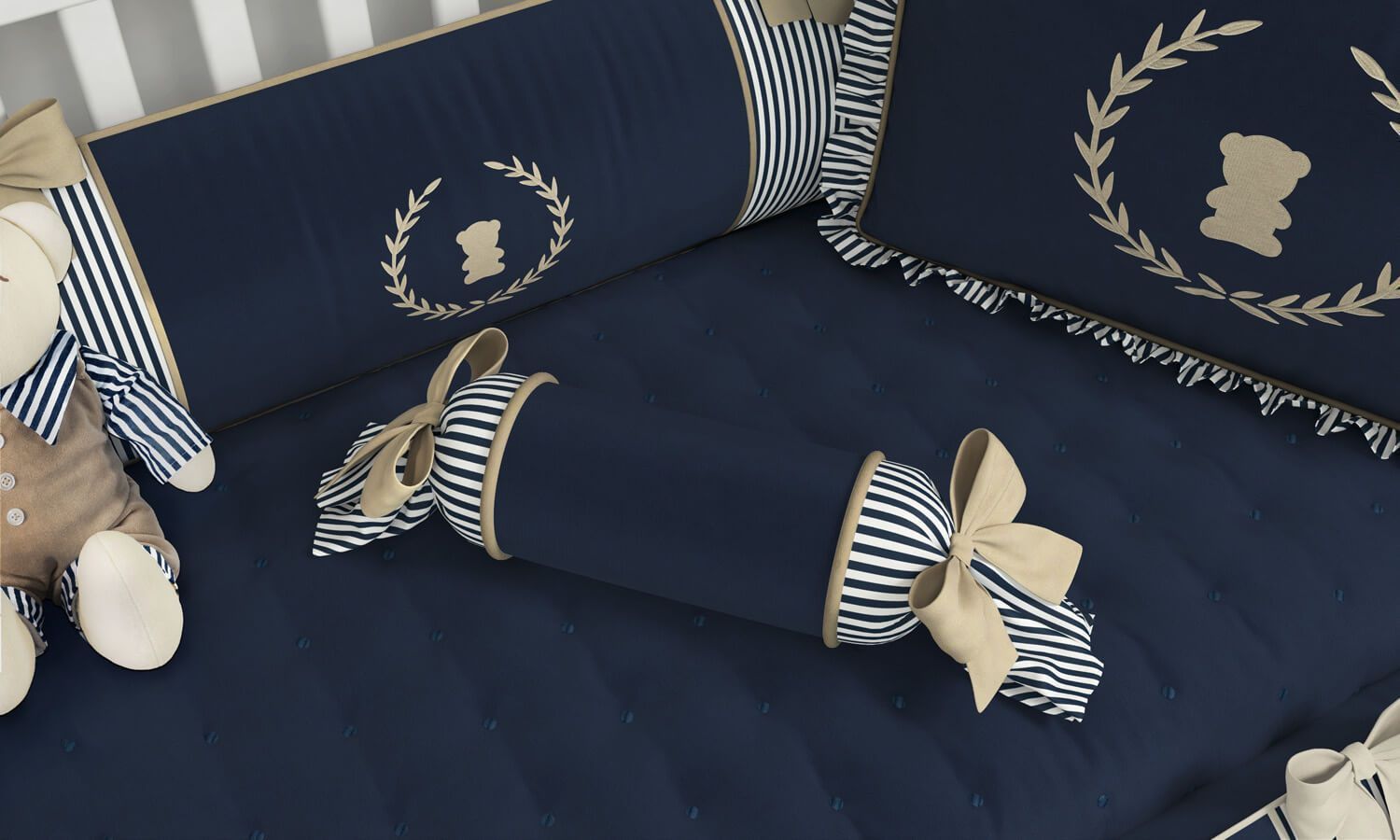 Conforto no berço para o seu príncipe! A Almofada Apoio Bala Luxo Azul Marinho é sinônimo de maciez e aconchego. Seu visual é suave, com listrinhas azuis e branca dando um toque a mais de delicadeza. Para finalizar, essa almofadinha conta com dois lacinhos graciosos nas laterais que são puro charme. Uma almofada dos sonhos no quarto de bebê do seu amor!