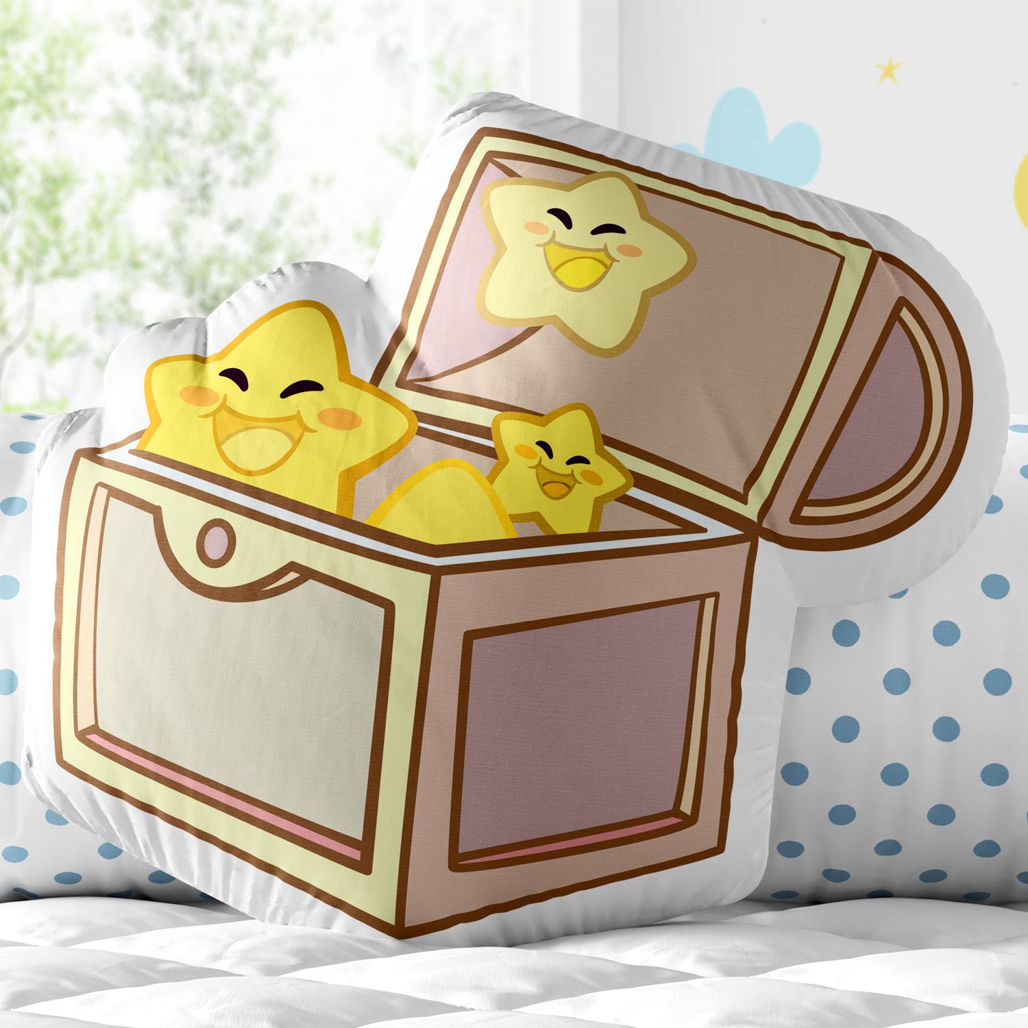 O quartinho de bebês e crianças merece esse toque de sonho e fantasia! A Almofada Baú de Estrelas decora o ambiente com graça e também é uma peça super gostosa de abraçar. Ela é decorativa, serve como apoio e combina perfeitamente com outros modelos de almofadas exclusivas da Grão de Gente
