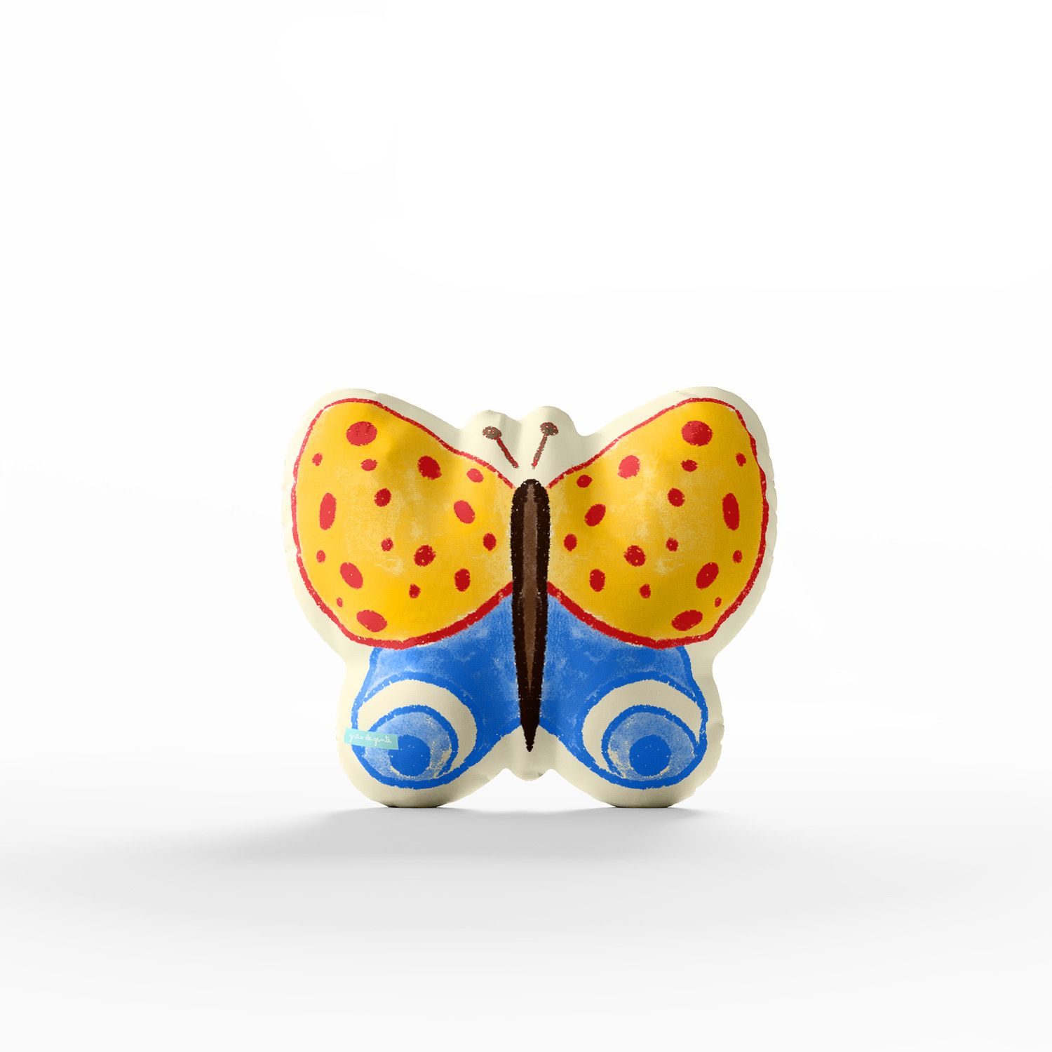 Almofada Borboleta Colorida Amarelo e Azul 33cm