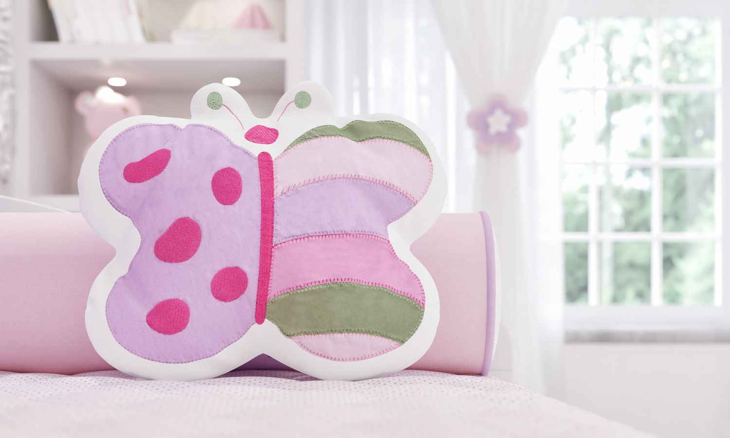 Ela conquista pelo seu charme, aconchego e delicadeza, afinal uma borboletinha bordada tão colorida, alegre e fofa como essa é irresistível, ideal para o quarto de bebê do seu amor!