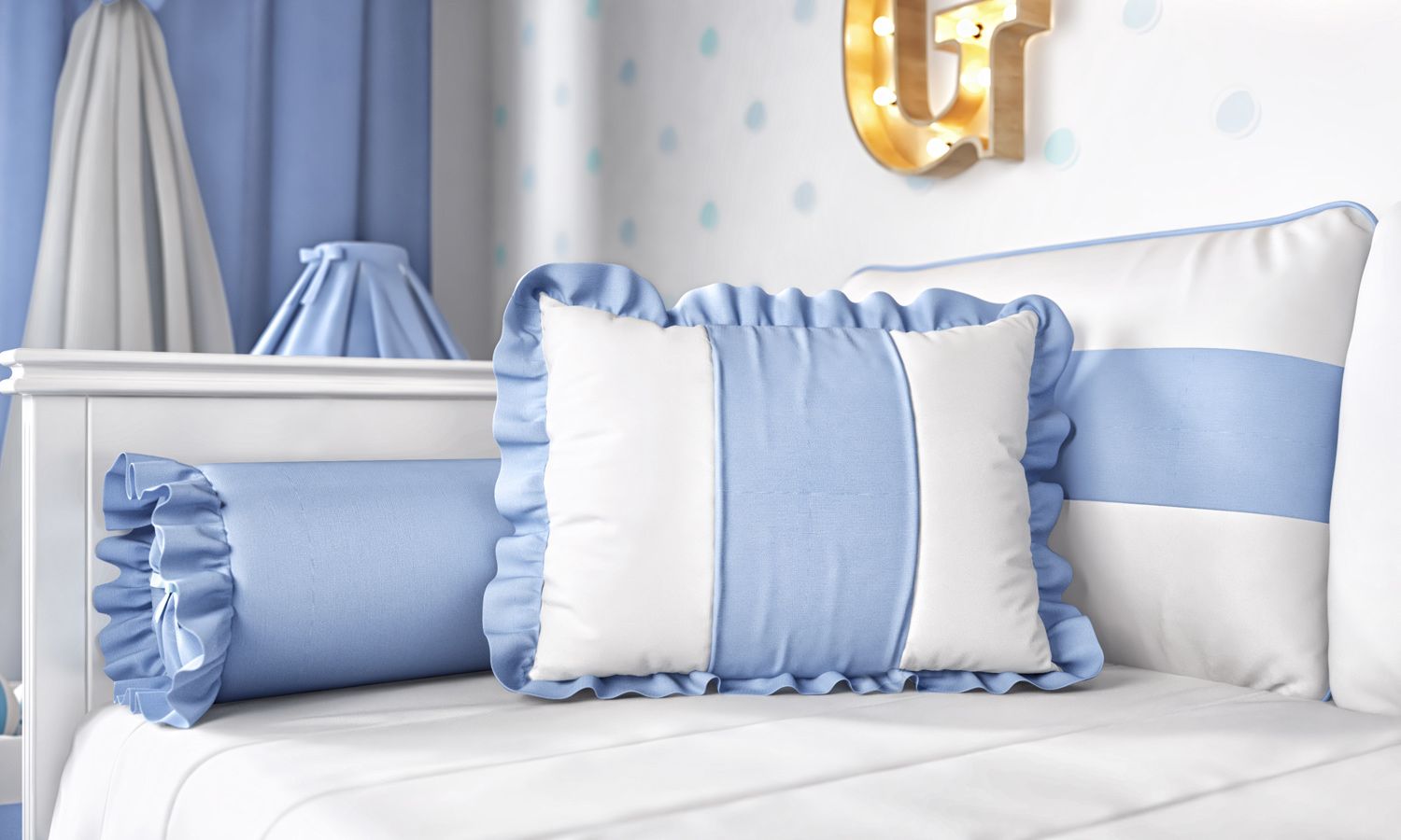 Charmosa e apaixonante! A Almofada com Babado Azul conquista as mamães de menino com detalhes bem charmosos. Além de dar um toque de carinho ao ambiente, esse produto fofinho já vem com um enchimento macio para garantir o conforto do seu maior amor. Linda sugestão de presente!