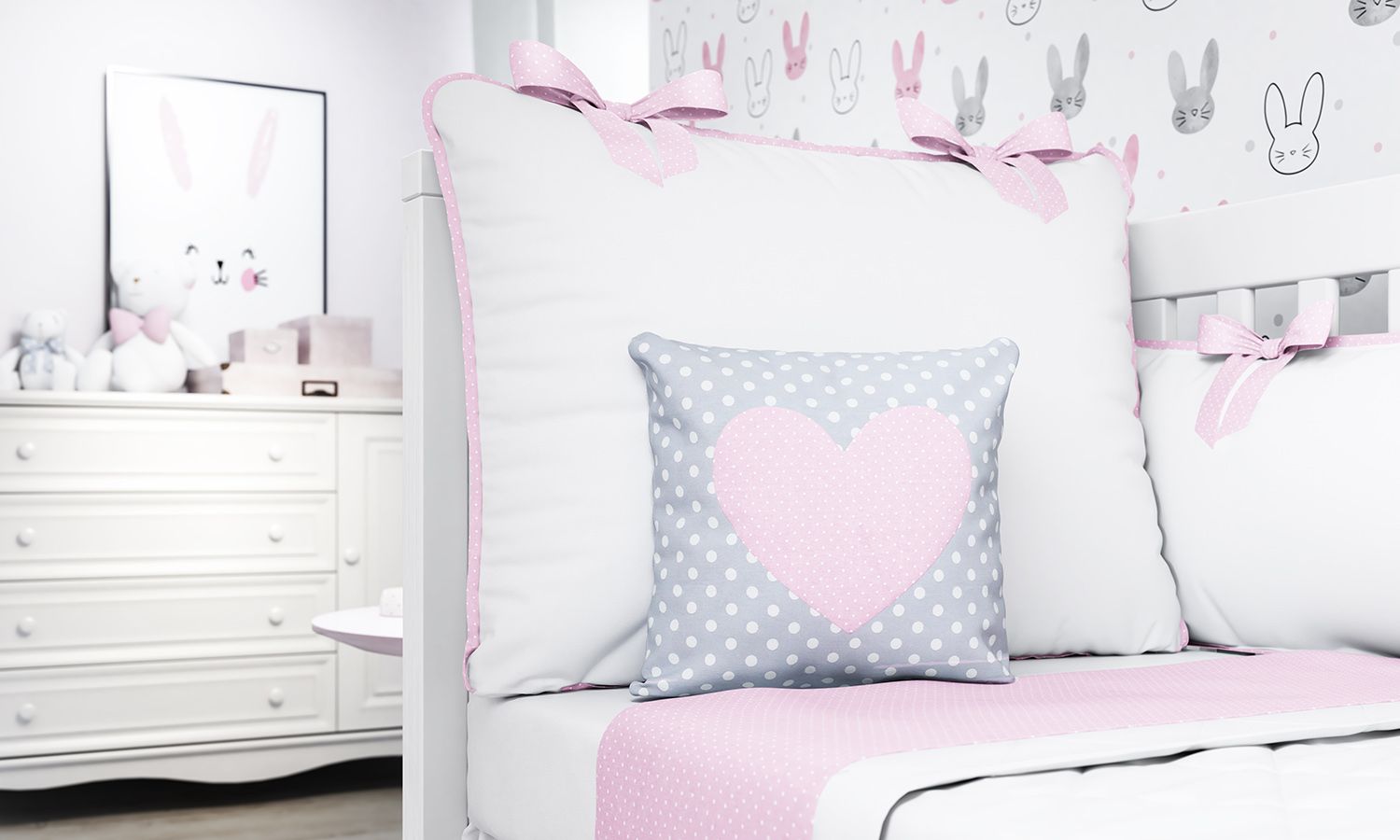 Desenhada com amor, a Almofada Coração vai se destacar na mais perfeita decoração do quarto de bebê! Isso porque a peça ganhou o charme da estampa de bolinhas brancas no tecido cinza, que aparece com o belo bordado de coração rosa — também embelezado pelo poá. Numa fina confecção, o tecido macio e enchimento fofinho 100% fibra de poliéster proporcionam um apoio confortável e o aconchego necessário para ótimos cochilos. Aposte nesse tema harmônico e confira a dupla de Almofadas Decorativas do enxoval!