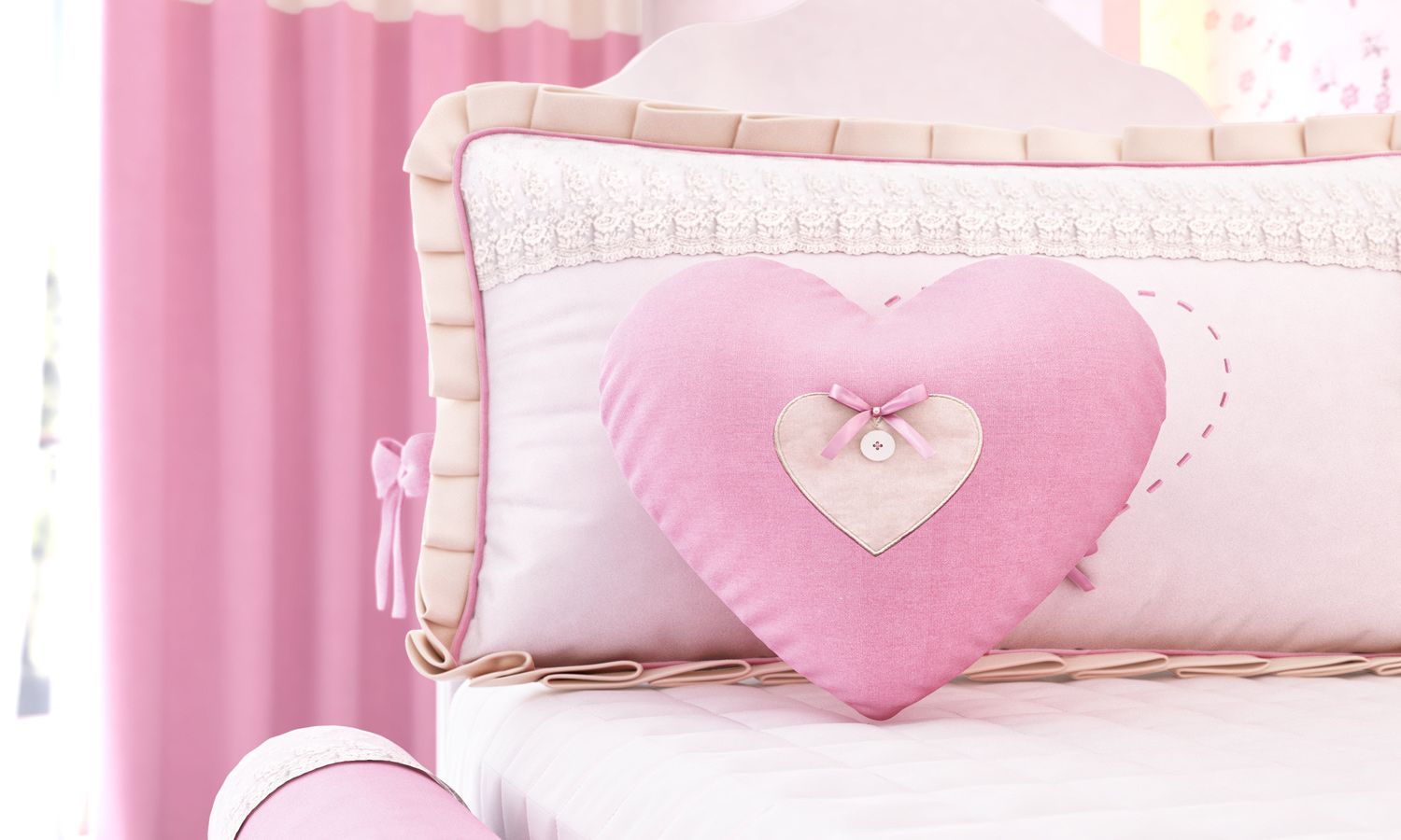 Rosa, romântica e apaixonante! A Almofada Coração vai arrancar suspiros das mamães de princesas com seu formato lúdico e o mais delicados detalhes! Exclusiva, a peça conta com uma pequena imagem de coração em tecido palha bordado, que acompanha lacinho, uma pequena pérola e o lindo botão — para finalizar a decoração do quarto de bebê com excelência. Linda sugestão de presente!
