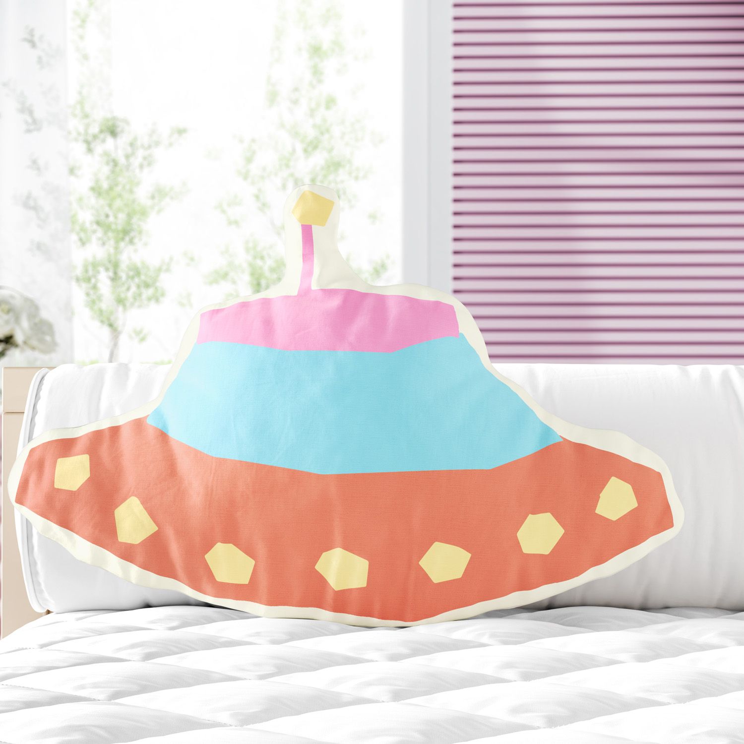 Confeccionada em tecido de toque suave, a peça em formato de Disco Voador em cores neon adiciona um toque divertido, moderno e tecnológico ao quartinho.