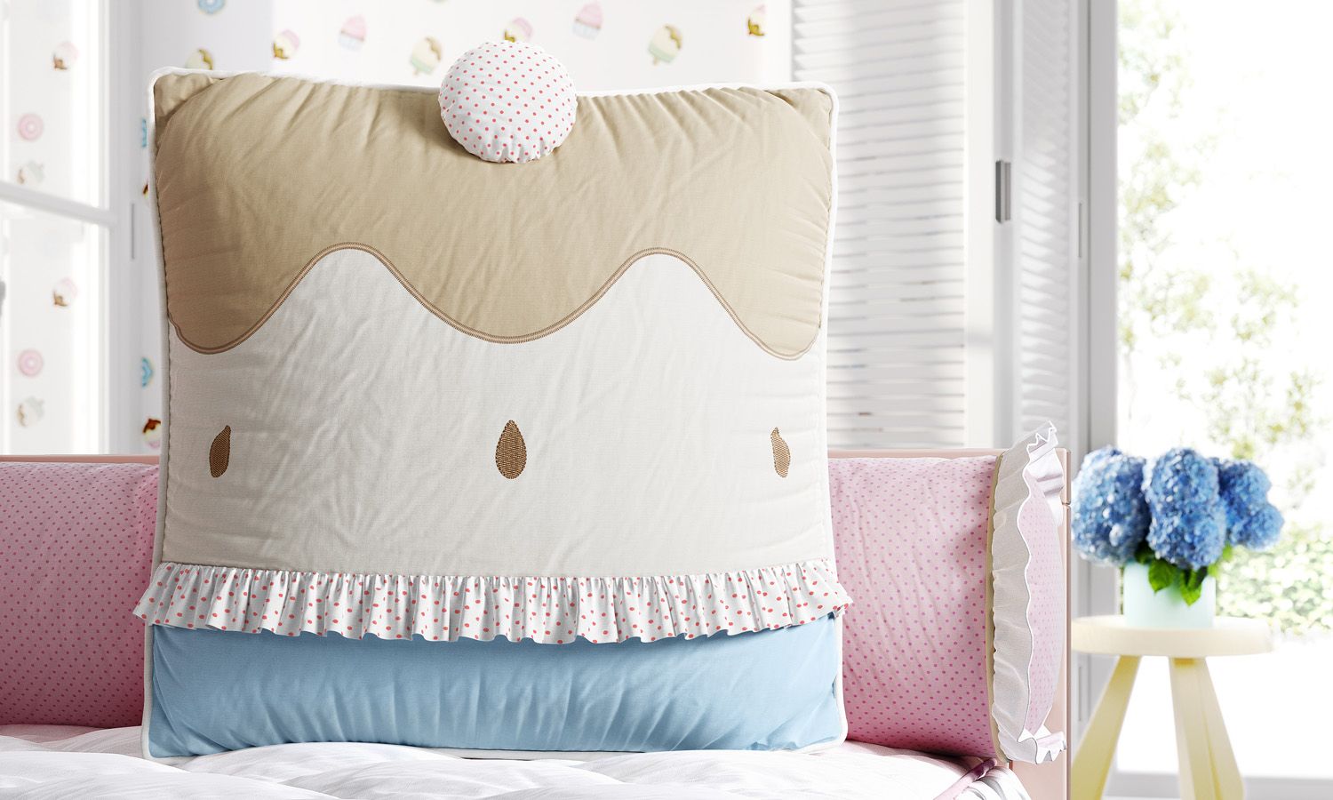 Uma linda almofadinha em formato de bolinho com cobertura de chocolate e cerejinha no topo chegou para adocicar a decoração do quarto do bebê! A Almofada Doce Encanto Cupcake Cerejinha tem detalhes bordados e uma charmosa estampa poá de pontinhos vermelhos. Além de entreter sua princesinha, essa almofadinha decorativa com jeitinho de floresta negra foi escolhida pela apresentadora Ticiane Pinheiro para o quarto da Família Biscoito. Linda opção para quartos de menina com inspiração candy color!