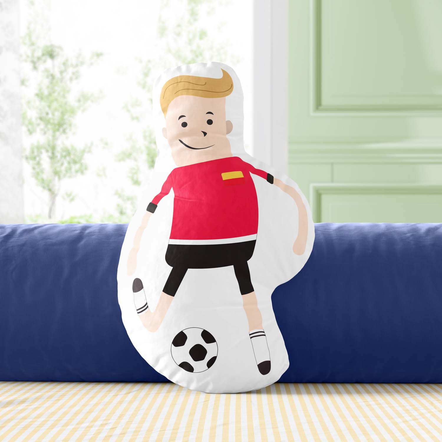 Quem nunca sonhou em ser um jogador de futebol? Criada para marcar um golaço na decoração do cantinho dos pequenos, a Almofada Jogador de Futebol Vermelha e Preta tem tudo que a criançada precisa para se sentir dentro de um estádio.