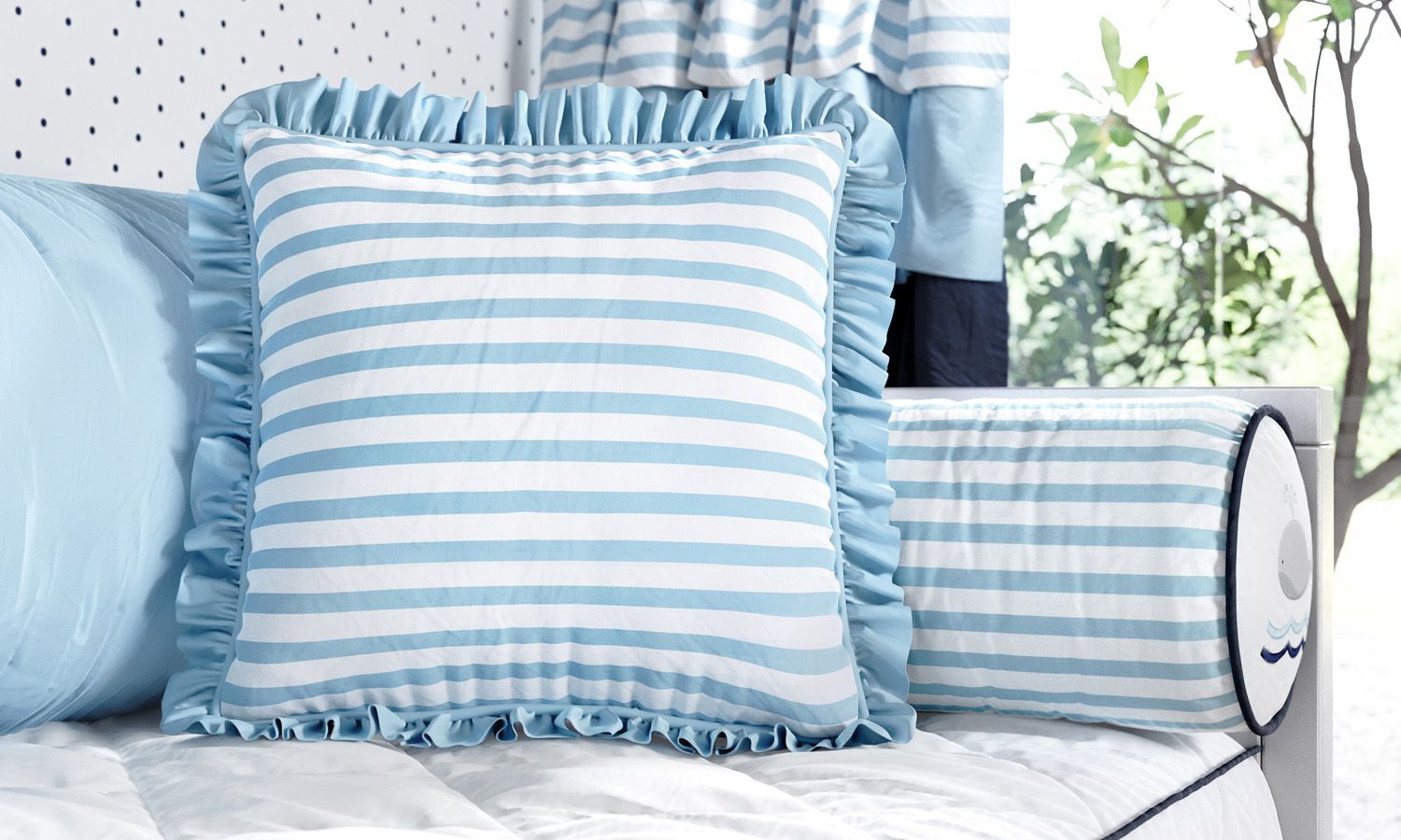 Esse acessório é um charme! Sua estampa listrada combina perfeitamente com o quarto de bebê moderno enquanto os babadinhos levam mais graça e formosura para a decoração. Assim, você garante conforto e aconchego sem abrir mão do bom gosto!