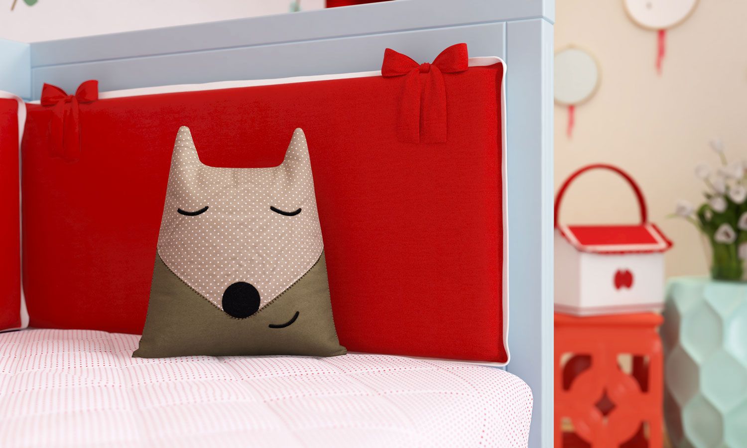 De malvado ele não tem nada! Diretamente da Coleção Chapeuzinho Vermelho, esse lobinho sapeca aparece na decoração do quarto de bebê com um singelo rostinho e cheio de amor! Uma delicada estampa poá enfeita a almofadinha e equilibra com detalhes de tecido marrom liso mais um rostinho encantador de lobo, com direito a boquinha, nariz redondinho e olhinhos fechados. Com enchimento fofinho e formato de lobo, a almofadinha conta com uma orelhinha pra lá de adorável e vai acrescentar uma porção extra de capricho no cantinho! O toque lúdico e divertido do acessório estimula a imaginação e estará presente em todas as brincadeirinhas da pequena, deixando-a muito mais realista. Aproveite e confira as Almofadas Decorativas, com as almofadinhas de outros personagens do conto infantil.