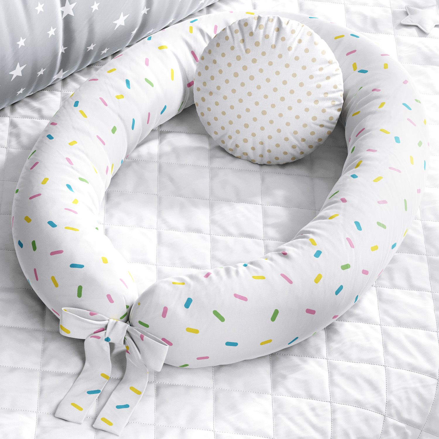A Almofada Mami Protetora 3 em 1 é um produto exclusivo da Grão de Gente, a maior marca de enxoval e quarto de bebê da América Latina. Um acessório multifuncional que pode ser usado como almofada amamentação, redutor e protetor de berço. Mas não é só isso! Graças aos dois metros de comprimento, você vai utilizá-la por muito mais tempo, na cama dos pais, no tapete da sala, na cama montessoriana e até na lateral da cama de solteiro.