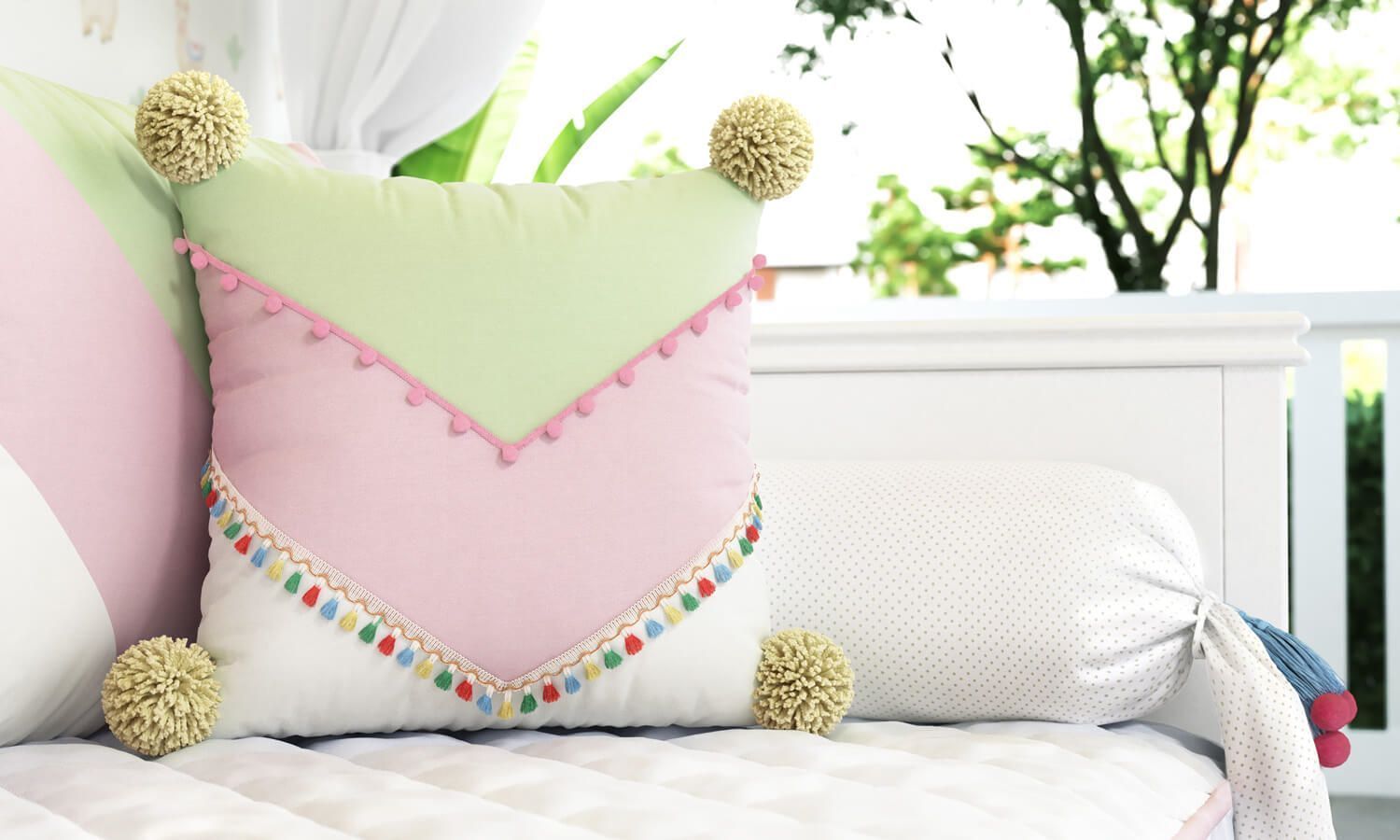 A Almofada Pompons e Tassel 38cm combina dois detalhes encantadores da coleção Amiguinhas Lhamas – Linha Sabrina Sato Mom, os pompons e os tasséis trazem o jeitinho de menina e harmonizam perfeitamente com as queridinhas lhamas.