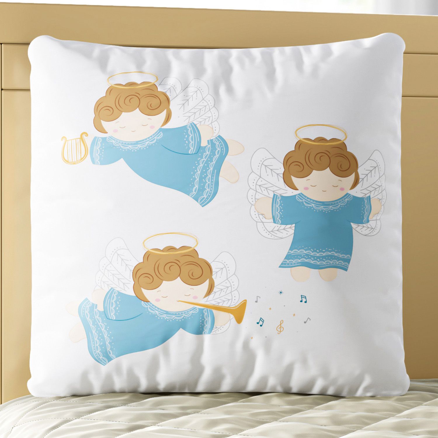 A Almofada Quadrada Anjinhos Felizes é um produto exclusivo da Grão de Gente, a principal marca de enxoval e quarto de bebê da América Latina. Essa almofadinha encantadora traz uma estampa em alta definição para compor a decoração com aconchego e originalidade. Ela já vem com enchimento, o tecido não amassa e a estampa sublimada é feita com tinta atóxica (a base de água) e toque zero, mais confortável para os pequenos.