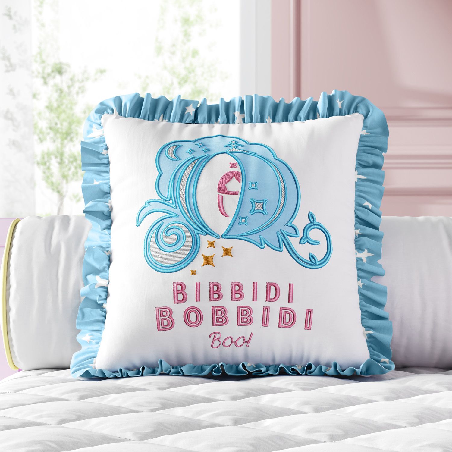 A Almofada Quadrada Carruagem com Babados Princesa Cinderela é mais um item exclusivo Grão de Gente para a decoração do quarto de bebê e infantil com charme e graciosidade sem igual.