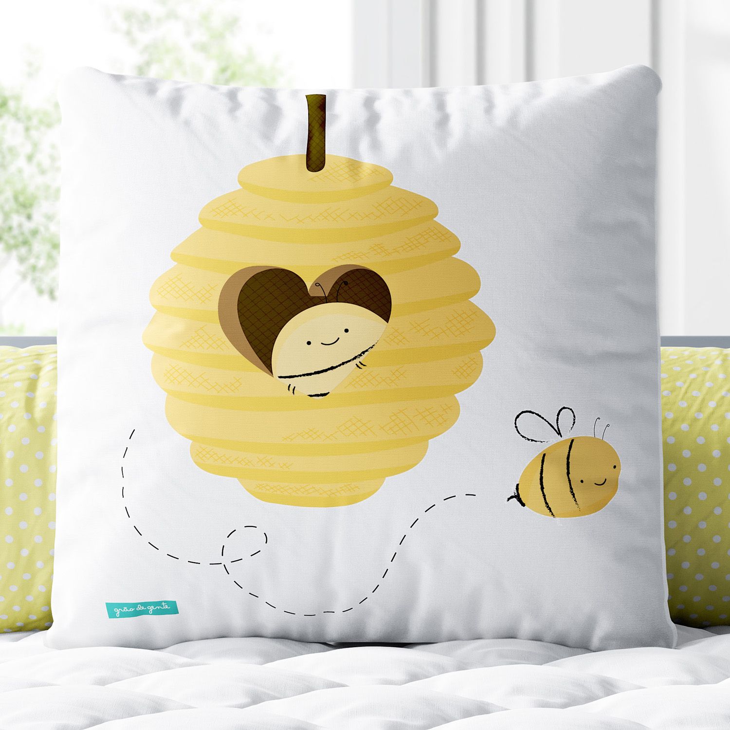 A Almofada Quadrada Colmeia Coração é um produto exclusivo da Grão de Gente, a principal marca de enxoval e quarto de bebê da América Latina. Essa almofadinha encantadora traz uma estampa em alta definição para compor a decoração com aconchego e originalidade. Ela já vem com enchimento, o tecido não amassa e a estampa sublimada é feita com tinta atóxica (a base de água) e toque zero, mais confortável para os pequenos.