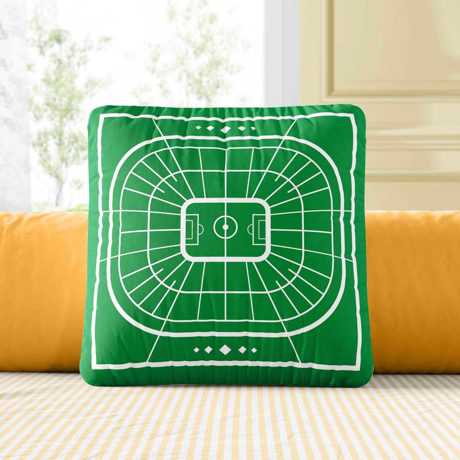 Quem nunca sonhou em ser um jogador de futebol? Criada para marcar um golaço na decoração do cantinho dos pequenos, a Almofada Quadrada Estádio de Futebol tem tudo que a criançada precisa para se sentir dentro de um estádio.