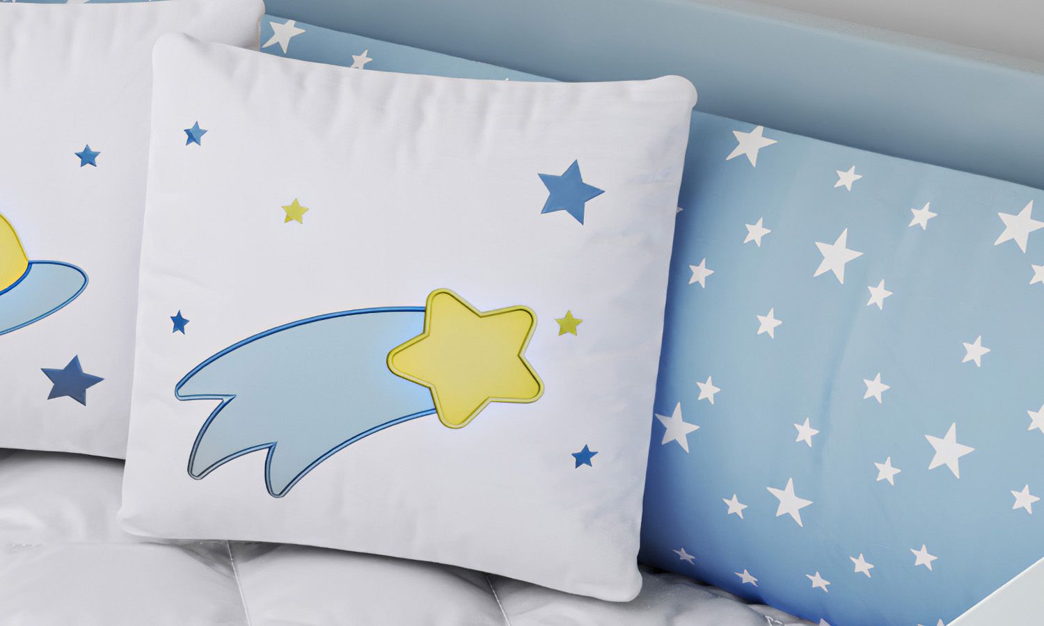 A Almofada Quadrada Estrela Cadente Azul e Amarelo dá um toque lúdico à decoração e proporciona todo o aconchego que seu amor merece. Perfeita para quarto de menino com tema astronauta ou espacial. Tudo isso com a qualidade da Grão de Gente, maior marca da América Latina em enxoval e decoração para quarto de bebê.