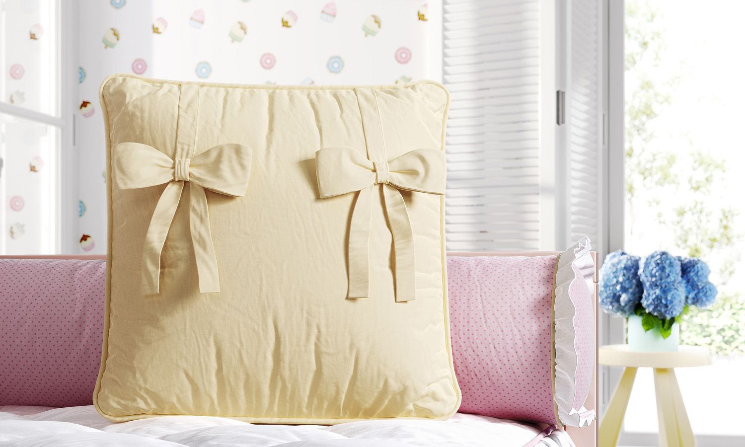 Delicada e charmosa! A Almofada Quadrada Laços Amarelos transmite meiguice e tranquilidade para a decoração candy color do quarto de bebê. Com dois lacinhos encantadores, que já vêm prontos, essa almofadinha decorativa da Coleção Doce Encanto traz muito aconchego para o quartinho da princesa. Você pode usá-la para enfeitar a cama babá, como fez a apresentadora Ticiane Pinheiro no quarto da caçula Manuella, com tema Família Biscoito.