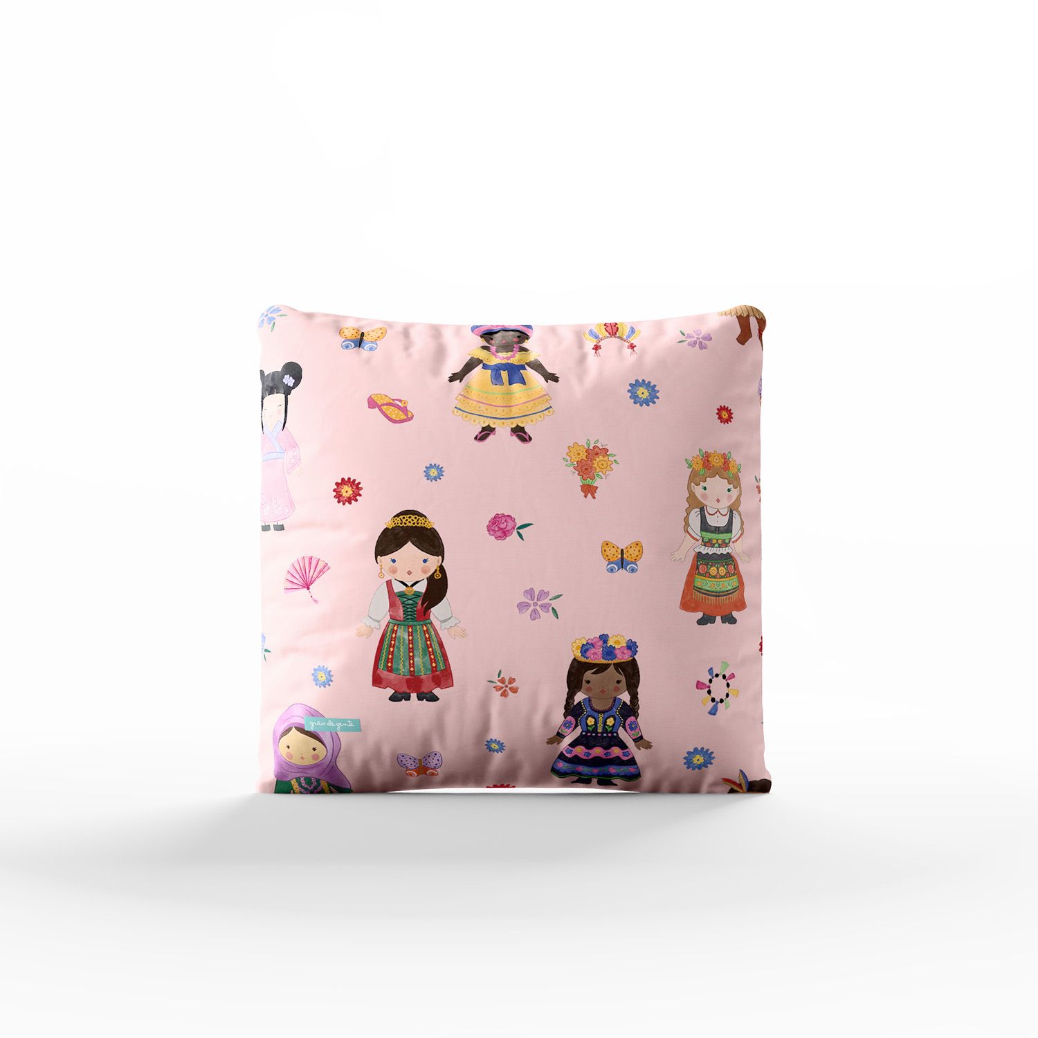 Nossa almofadinha traz uma estampa exclusiva inspirada na diversidade cultural para compor um universo lúdico e criativo no quarto da sua pequena! Ela já vem com enchimento e a estampa sublimada é feita com tinta atóxica (a base de água).