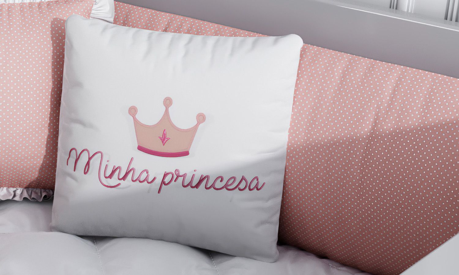 Um toque de realeza no quartinho da sua menina! A Almofada Quadrada Minha Princesa Rosa traz originalidade à decoração e proporciona o aconchego que seu amor merece. Tudo isso com a qualidade da Grão de Gente, maior marca da América Latina em enxoval e decoração para quarto de bebê.