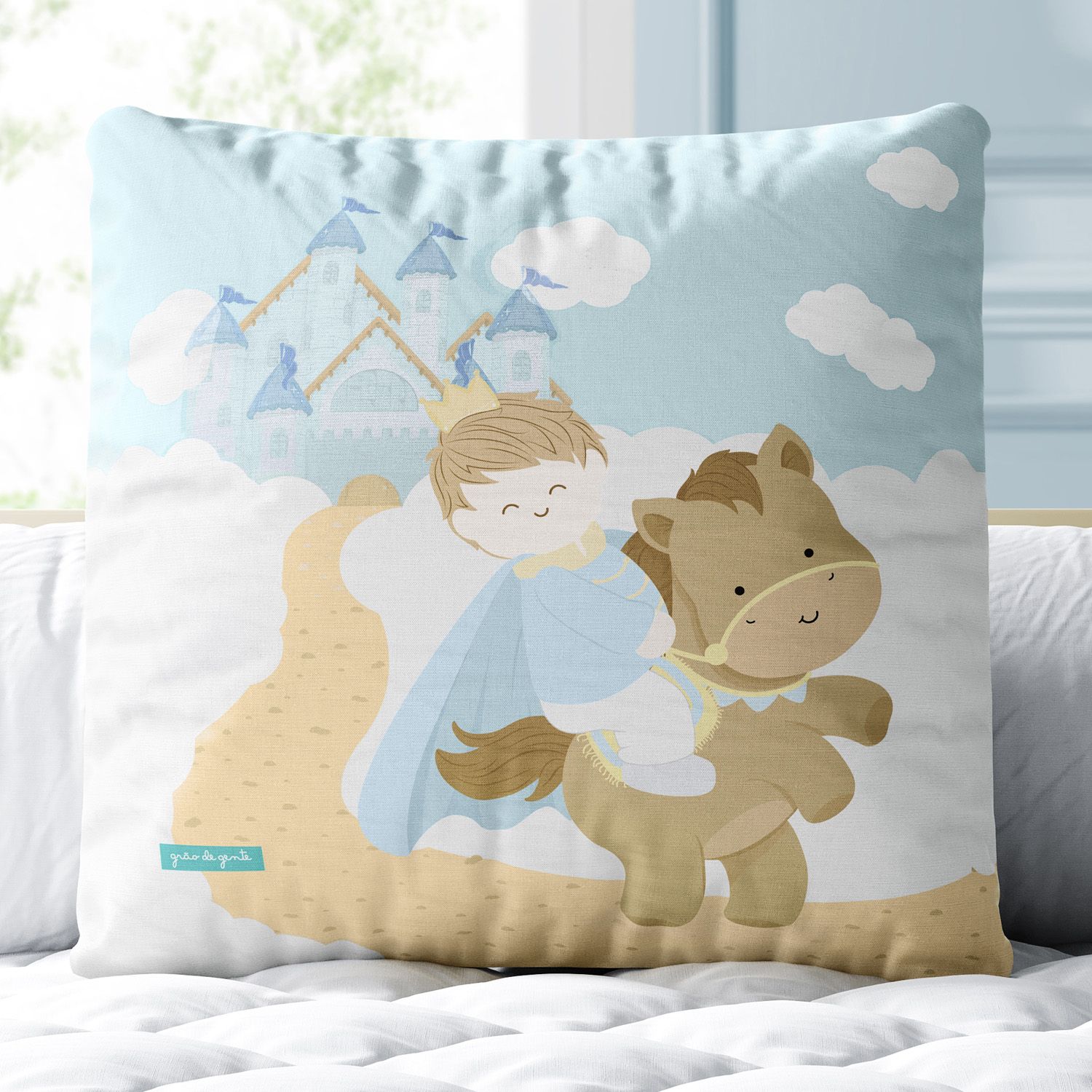 A Almofada Quadrada Príncipe Cavaleiro é um produto exclusivo da Grão de Gente, a principal marca de enxoval e quarto de bebê da América Latina. Essa almofadinha encantadora traz uma estampa em alta definição para compor a decoração com aconchego e originalidade. Ela já vem com enchimento, o tecido não amassa e a estampa sublimada é feita com tinta atóxica (a base de água) e toque zero, mais confortável para os pequenos.