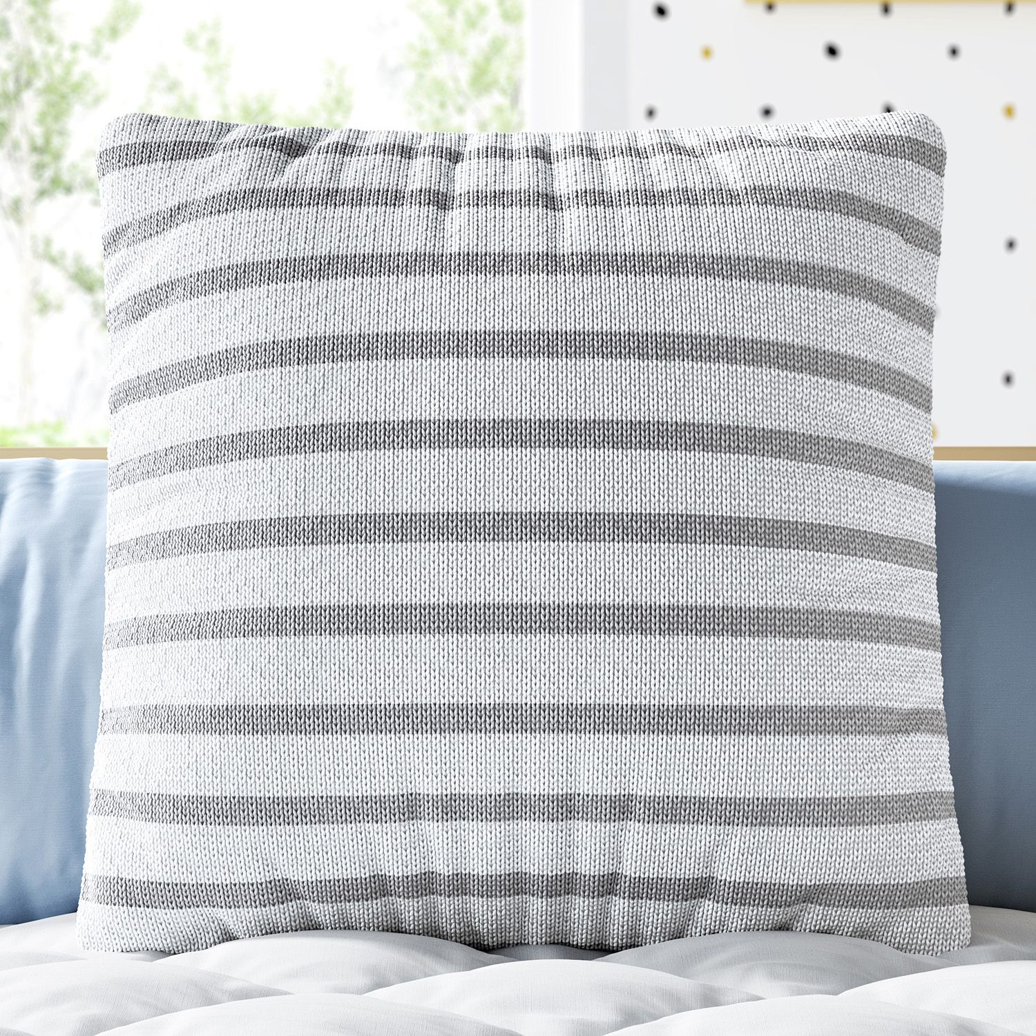 A Almofada Quadrada Tricot Listrado Branco e Cinza completa a decoração do quarto de bebê com leveza e sofisticação. A peça exclusiva da Grão de Gente é uma escolha atemporal, perfeita para decorar e fácil de combinar com diversos temas, especialmente em ambientes com estilo escandinavo e neutro chic.