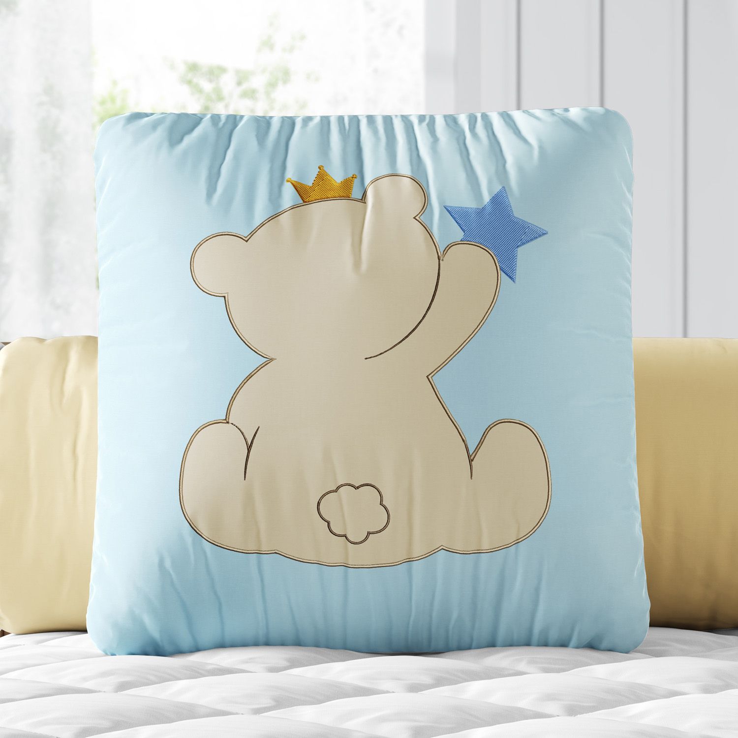 Essa almofadinha decorativa conta com bordado do ursinho com coroa de costas, adicionando um visual lúdico e delicado na decoração.
