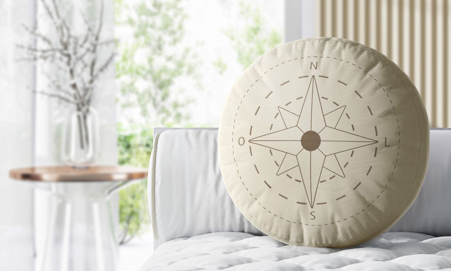 A Almofada Redonda Rosa dos Ventos Bege é uma escolha autêntica e aconchegante para o quarto de bebê ou infantil. Essa almofadinha decorativa já vem com enchimento fofinho e convida ao relaxamento misturando cores neutras e bordado lúdico.
