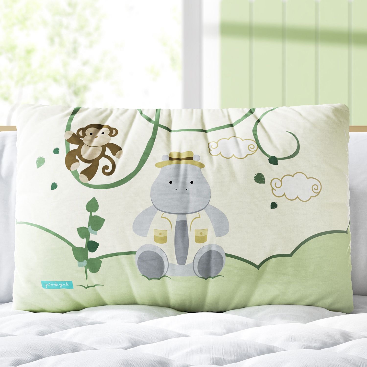 A Almofada Retangular Aventura Safári é um produto exclusivo da Grão de Gente, a principal marca de enxoval e quarto de bebê da América Latina.