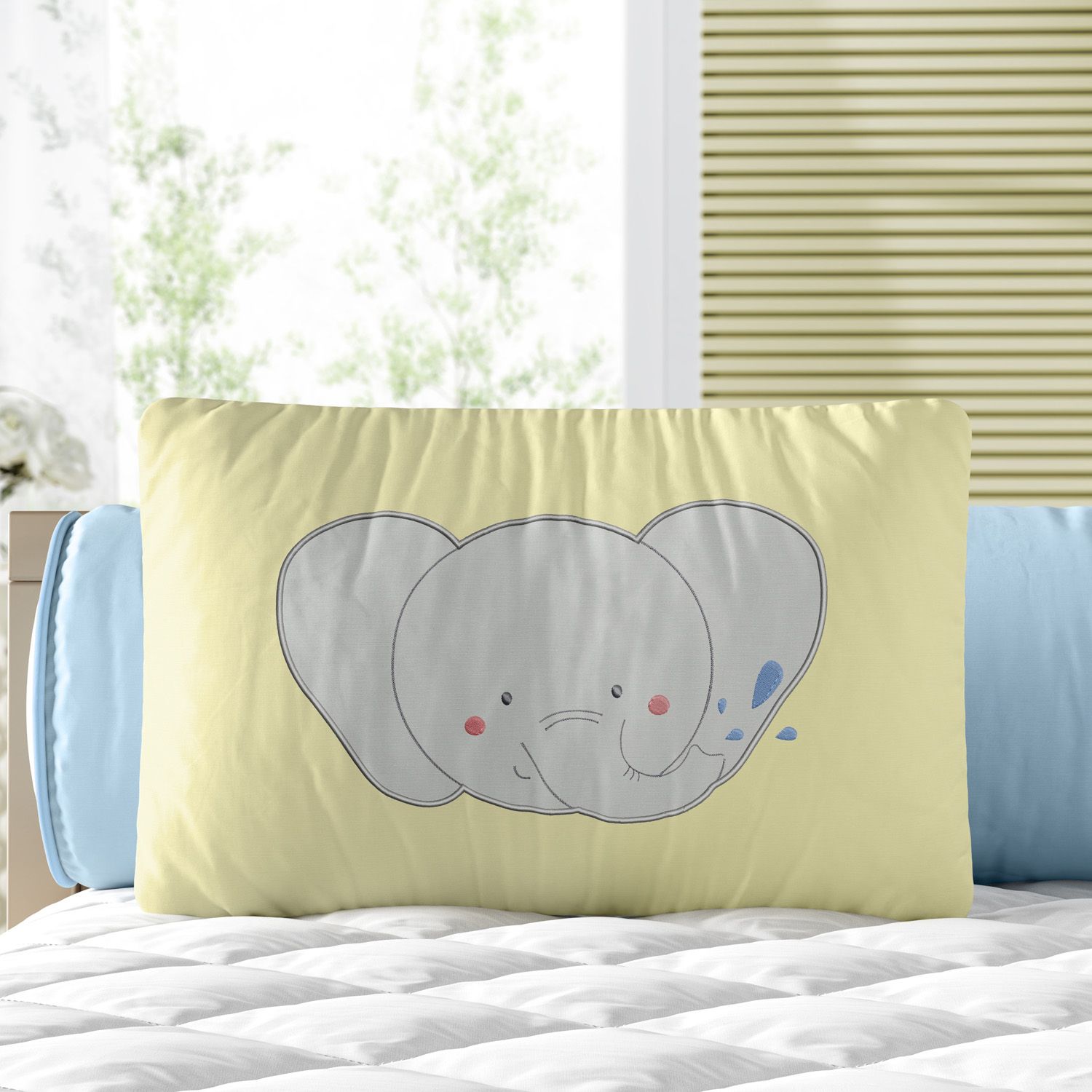 A Almofada Retangular Elefantinho Baby é uma criação exclusiva da Grão de Gente para decorar o quarto de bebê com um toque charmoso e muita fofura!