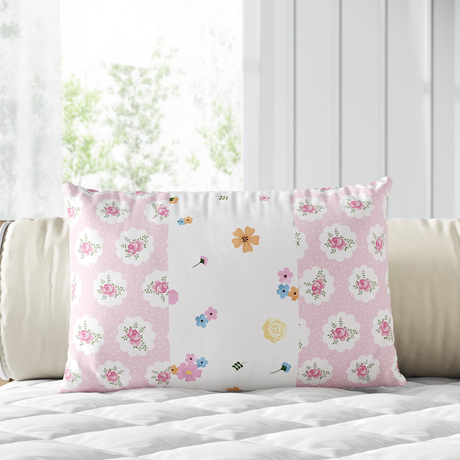 Almofada Retangular Floral Liberty Poá Rosa 35cm