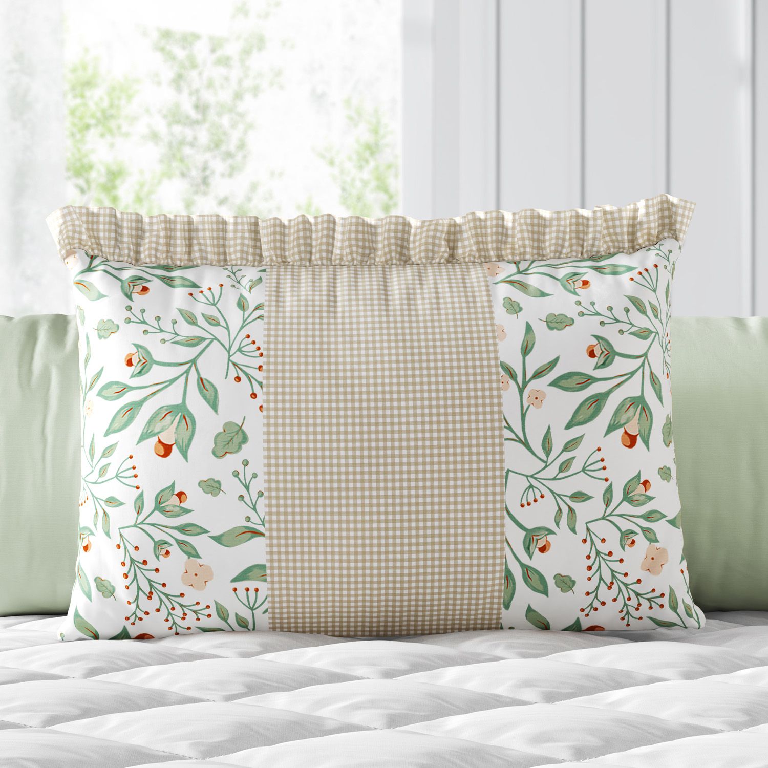 Com a beleza atemporal da estampa floral e o toque clássico do xadrez, a peça encanta ainda com o acabamento elegante com babadinhos. Perfeita para criar uma atmosfera romântica e repleta de aconchego no ambiente!