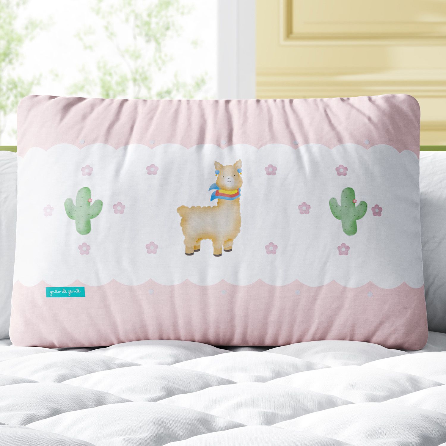 A Almofada Retangular Lhama e Cactos em Flor Rosa é um produto exclusivo da Grão de Gente, a principal marca de enxoval e quarto de bebê da América Latina. Essa almofadinha traz uma estampa em alta definição para compor a decoração com aconchego e originalidade. Ela já vem com enchimento, o tecido não amassa e a estampa sublimada é feita com tinta atóxica (a base de água) e toque zero, mais confortável para os pequenos.