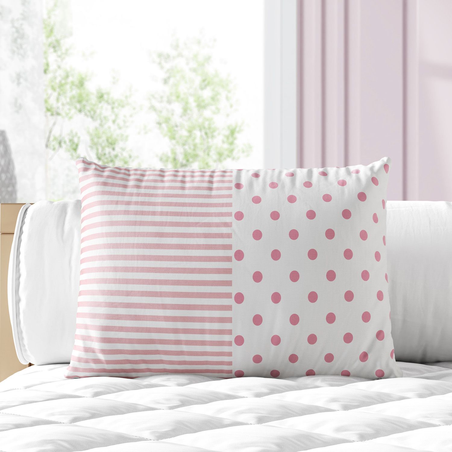 A Almofada Retangular Listras e Poá Rosa é uma criação exclusiva da Grão de Gente para decorar o quarto de bebê com muito charme e aconchego!