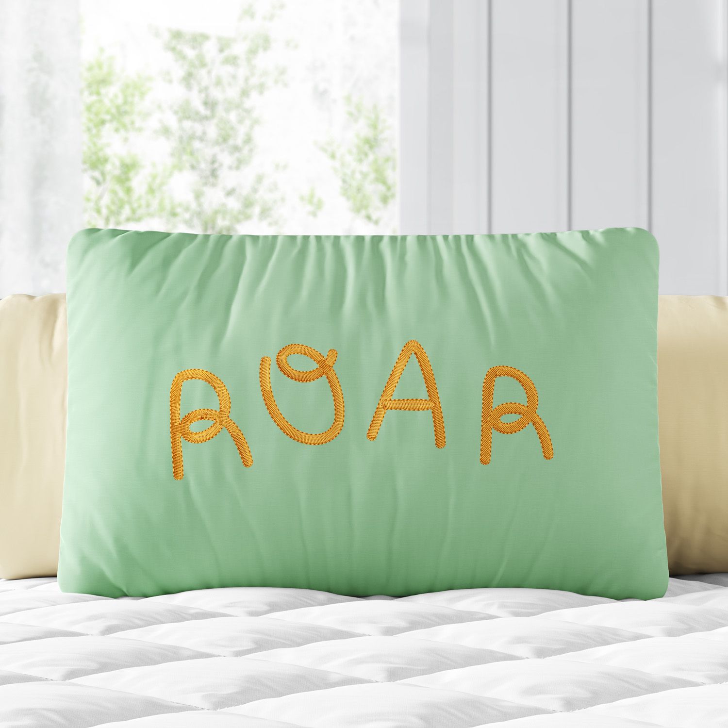 A Almofada Retangular Roar é pura fofura! Essa almofadinha decorativa tem bordado do som do rugido do tigre, reforçando o tema divertido do Kit Berço Carinha de Tigre no quarto de bebê dos sonhos.