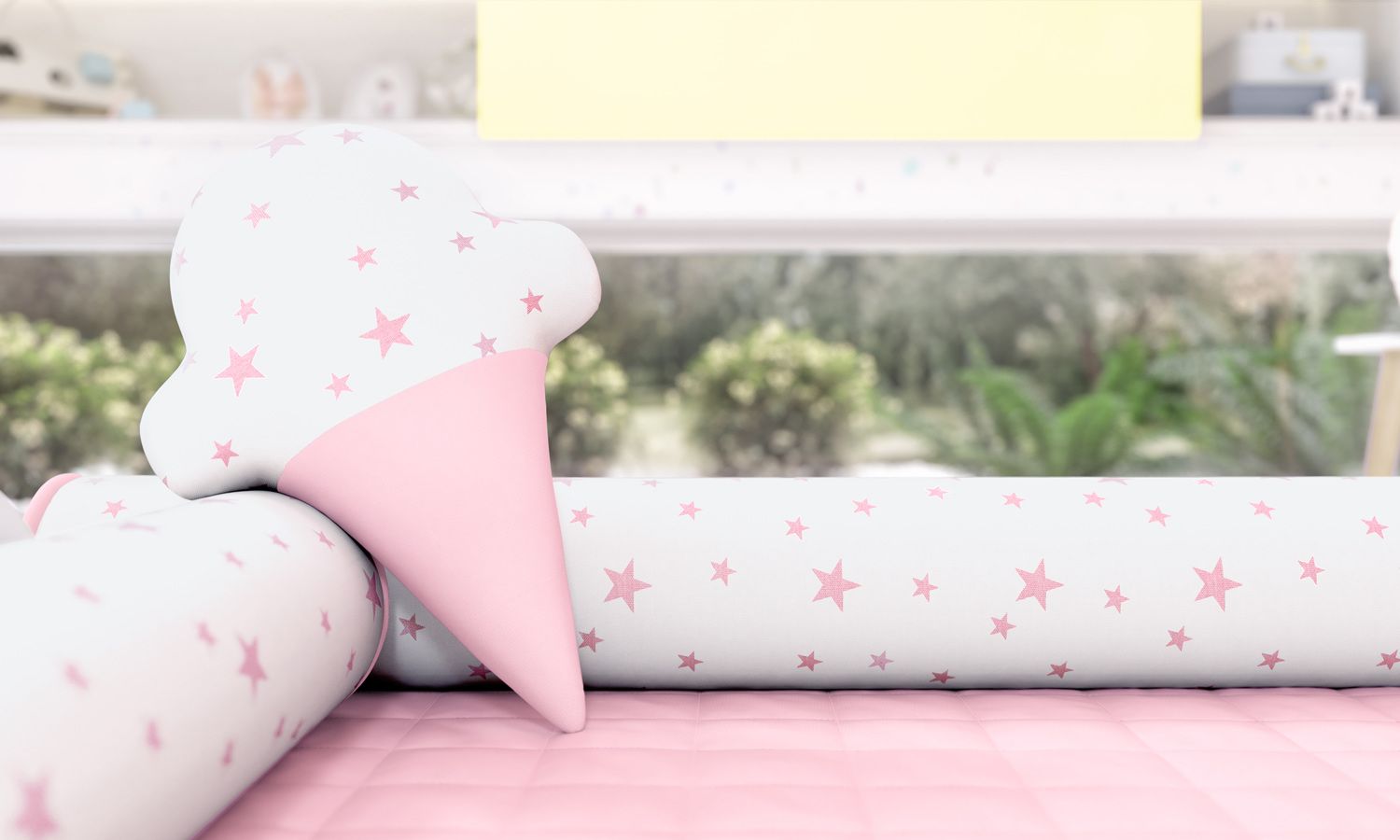 Na Grão de Gente, a sobremesa preferida entre a criançada serviu de inspiração para criar uma almofada fofinha! Como o nome já diz, a Almofada Sorvete tem formato lúdico do doce que é a cara do verão e será uma das melhores companhias na hora de brincar. Desenhada com carinho, esse modelo se destaca pelos detalhes impecáveis: a ‘casquinha’ do sorvete é representada pelo macio tecido amarelinho liso, que serve de base para as ‘bolas de sorvete’, estampadas por estrelinhas.