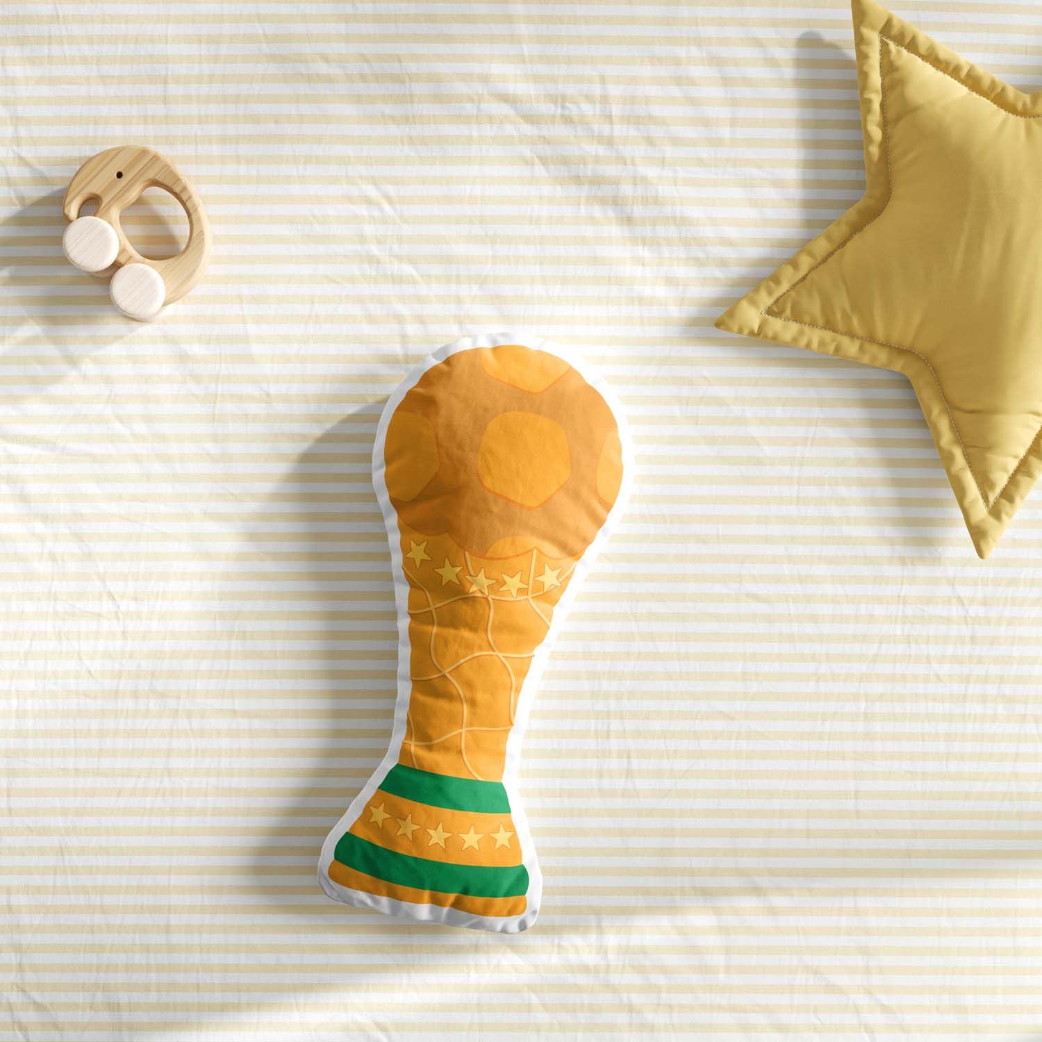 Quem nunca sonhou em ser um jogador de futebol? Criada para marcar um golaço na decoração do cantinho dos pequenos, a Almofada Taça do Mundo tem tudo que a criançada precisa para se sentir dentro de um estádio.