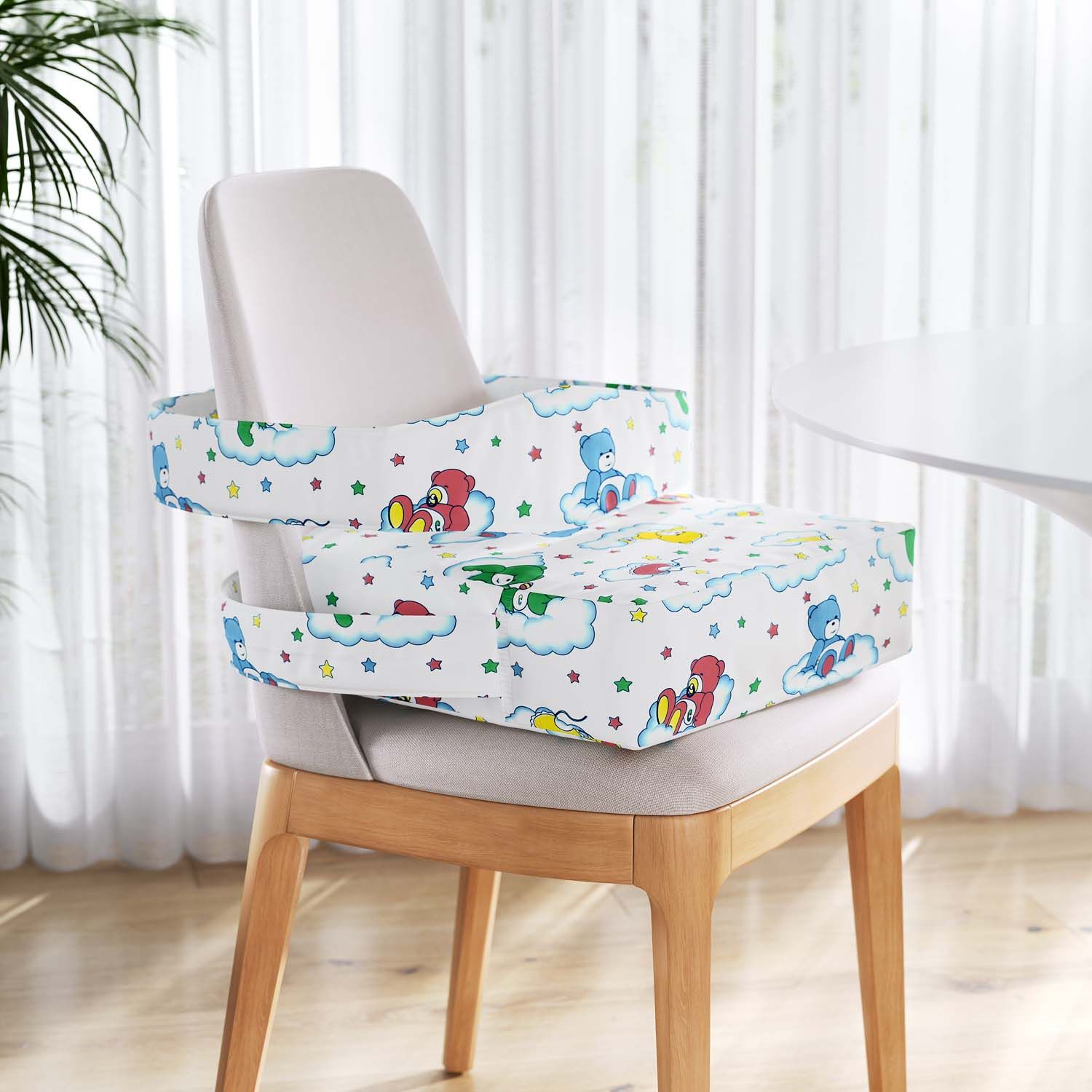 O Assento de Elevação Alimentação com Cinto Ursinhos nas Nuvens é um acessório pensado para facilitar o alcance dos pequenos à mesa, seja para comer ou também brincar, desenhar e estudar.