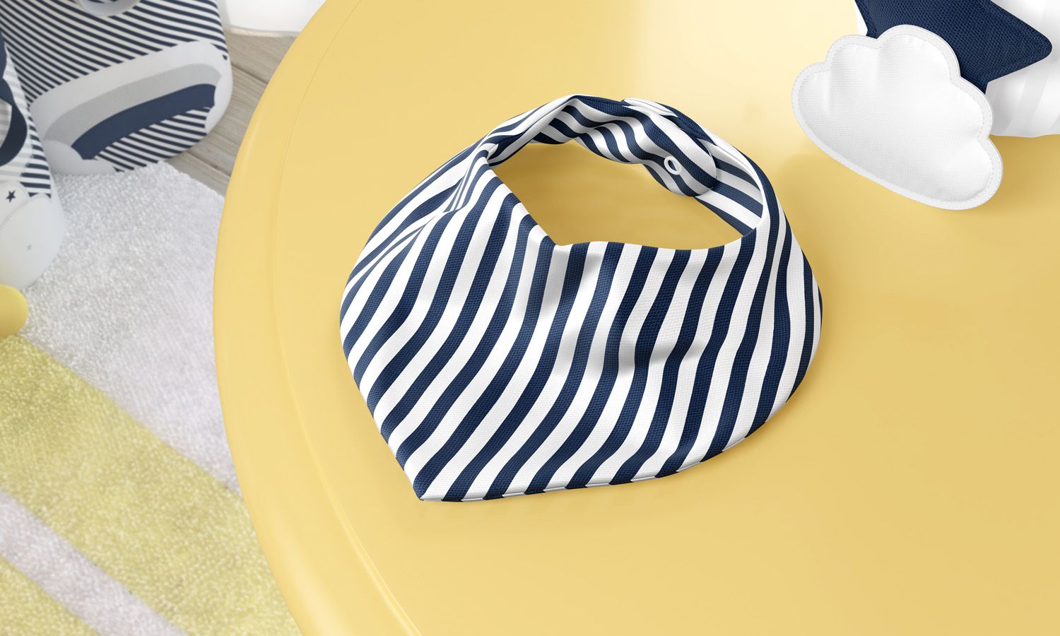 O Babador Bandana Listrado Branco/Azul mantém o bebê sempre limpinho durante as refeições e passeios. De tecido 100% algodão, a peça garante conforto para a pele sensível do recém-nascido. Já o fechamento é na parte de trás, com botão de pressão.