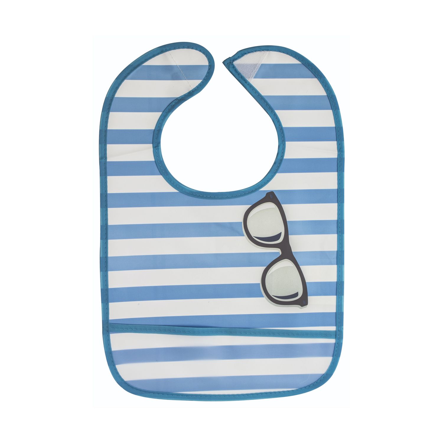 Feito com tecido impermeável, com fecho em velcro e bolso pega-migalhas, o acessório ajuda a manter o bebê sempre limpinho e confortável na hora da alimentação.