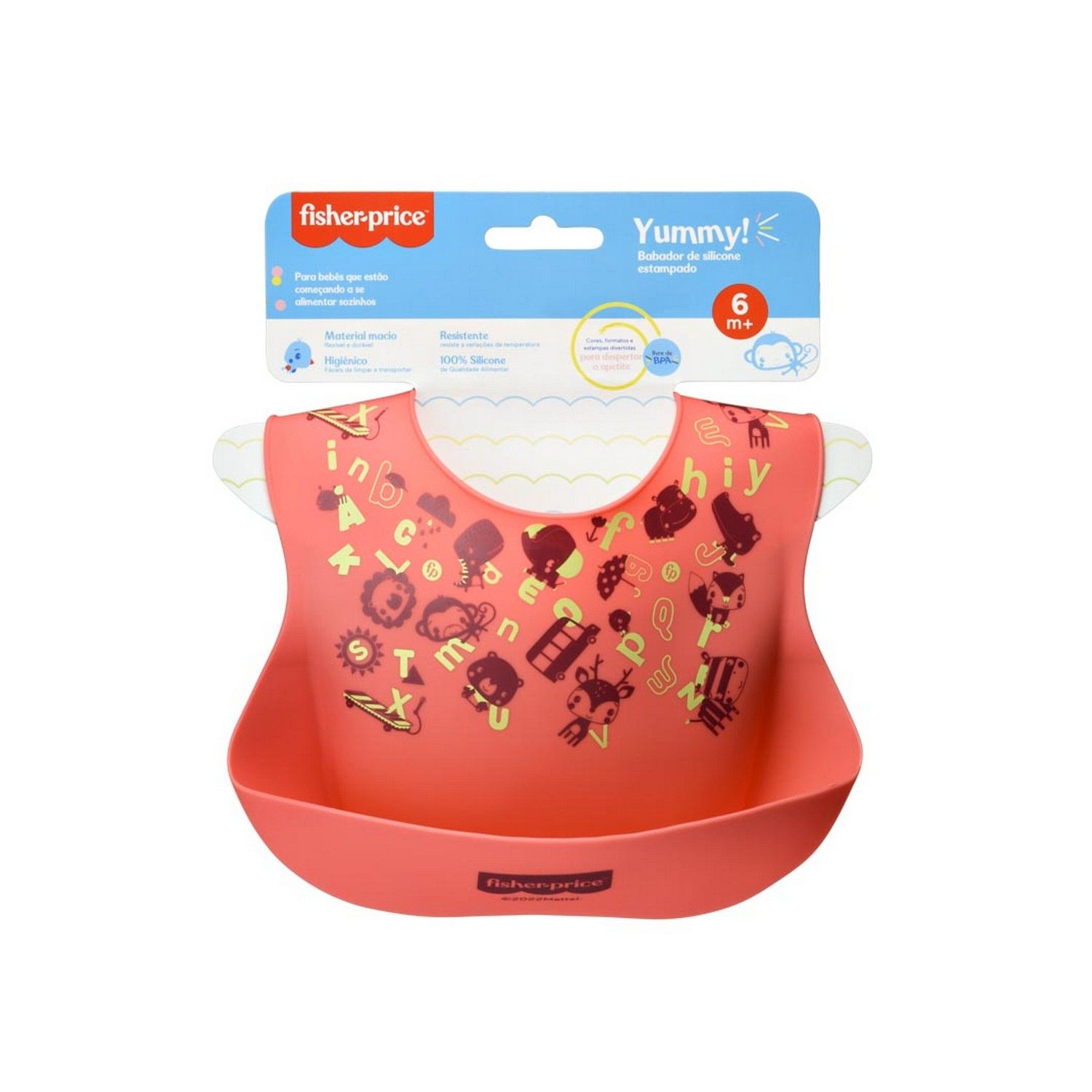 Feito de silicone, com fecho com botões ajustáveis e bolso pega-migalhas, o acessório ajuda a manter o bebê sempre limpinho e confortável na hora da alimentação.
